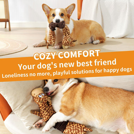 🐶【squeaky dog toy-2 sound】The dog toys have squeakers in both head and tail & crinkle sound paper in the middle of the body. It can make sounds when you press it or your dogs bite it, dogs will have more urge to chew it. Unique animal-giraffe character and bright colors can draw your dog's attention. Attract the dog's interest and satisfy the dog's hunting instinct.