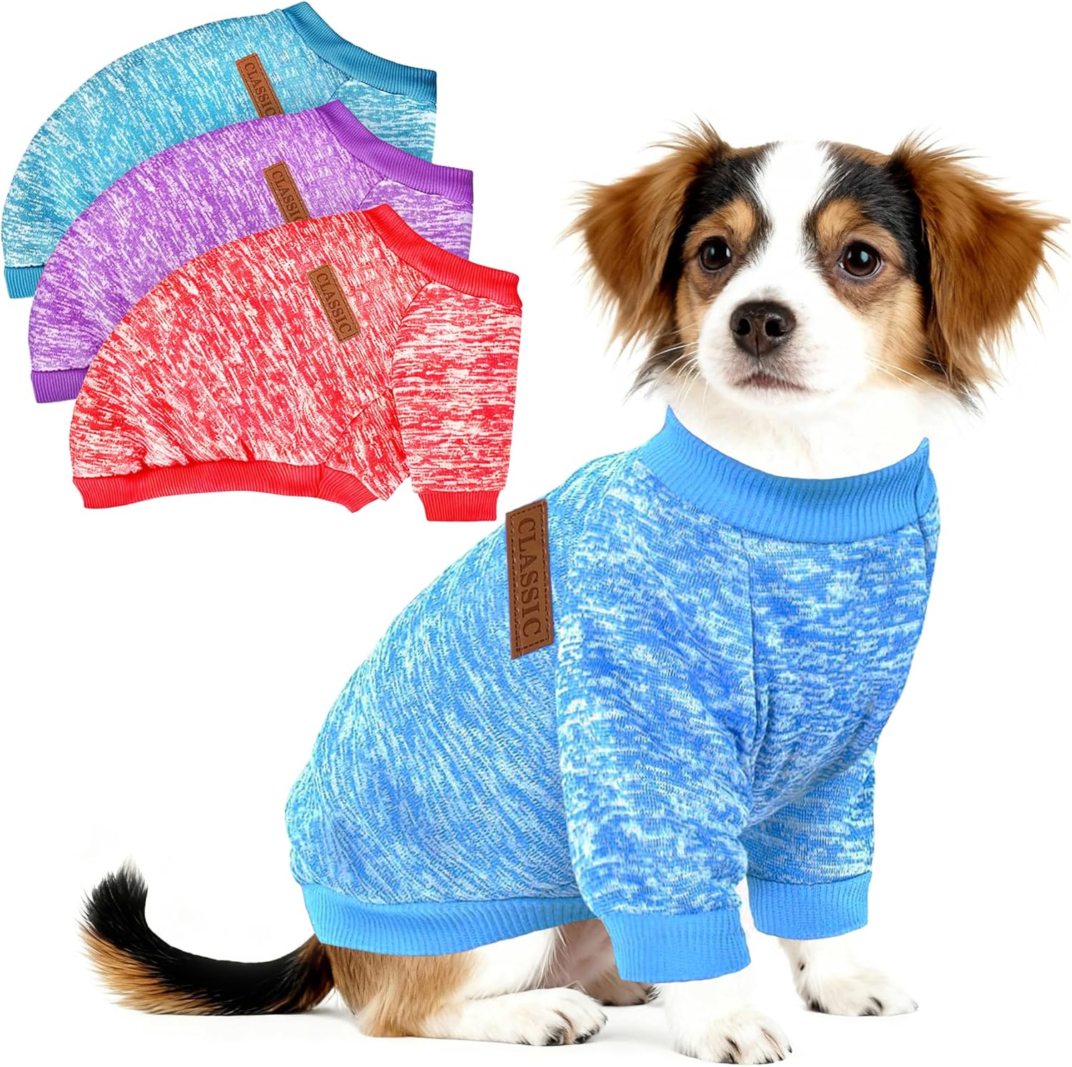 3 Pack Christmas Dog Sweaters for Small Dogs - Warm Fleece Unisex Puppy Sweater Outfit, Cute Cozy Thermal Winter Clothes for Small Breed Puppies & Cats Keep your furry friend warm and stylish this holiday season with our specially designed 3-pack dog sweater set. These sweaters combine functionality with festive charm to provide comfort and warmth during colder months. Key Features: Three-Piece Holiday Set: This value pack includes three sweaters in distinct festive colors and designs, offering variety for different occasions throughout the season. Comfortable Blend Fabric: Constructed from a cotton-polyester fleece blend that offers softness and helps maintain warmth while allowing for breathability. Small Breed Specific Sizing: Available in multiple sizes (XS-XL) developed to fit various small breed dogs. Please consult our detailed size chart based on your pet's weight measurements for optimal fit. Functional Design: Features include stretchable neckline and leg openings for easier dressing, and a body-hugging cut that allows freedom of movement. Practical Care: The sweaters are machine washable and maintain their shape and softness through multiple washes, making them practical for regular use. Size Guide: XXS: 2.2-3.5 lb XS: 3.5-5.5 lb S: 5.5-10 lb M: 10-14 lb L: 14-18 lb XL: 18-22 lb Ideal for small breeds including Chihuahuas, Yorkshire Terriers, Toy Poodles, Shih Tzus, and other petite dogs. The unisex designs suit both male and female pets. These sweaters work well for indoor comfort, outdoor walks, holiday gatherings, and photo opportunities. They provide an additional layer of warmth during cold weather days.