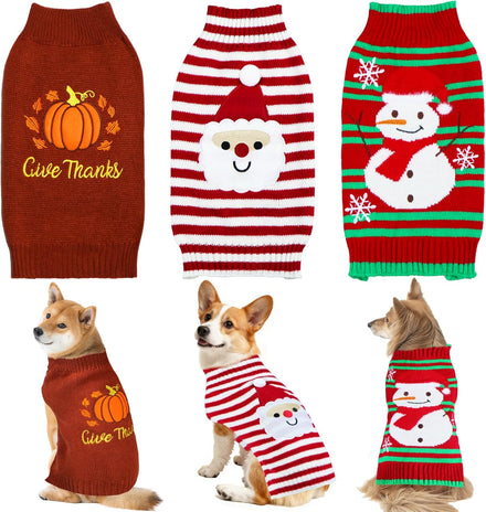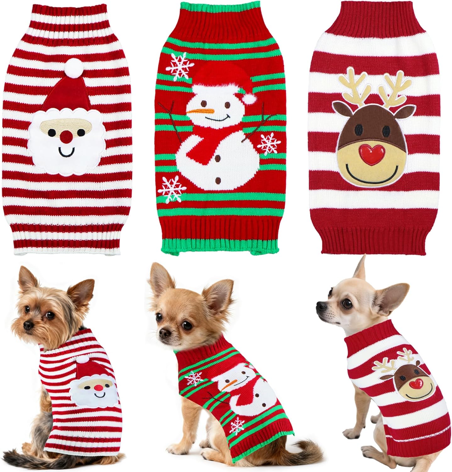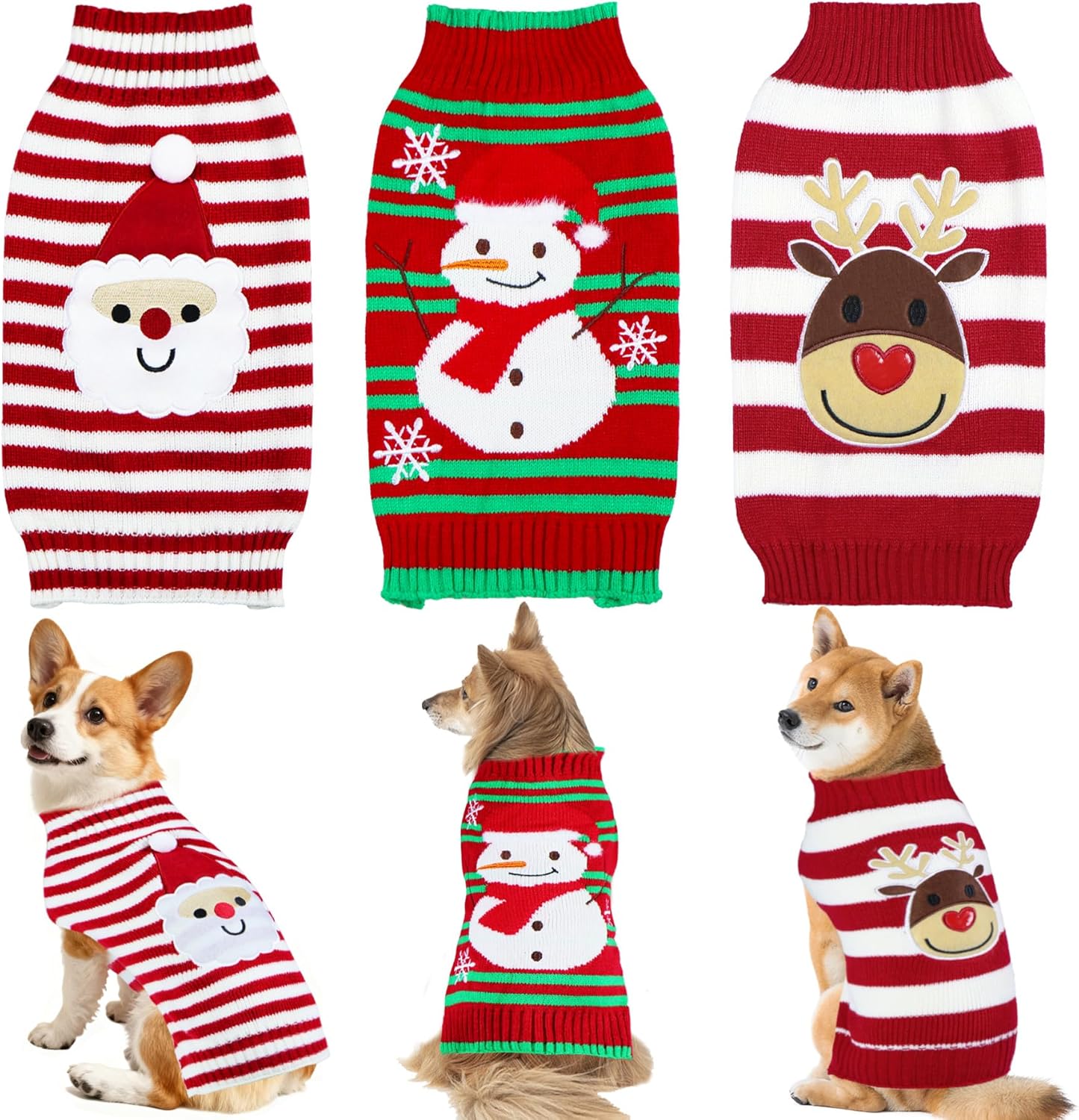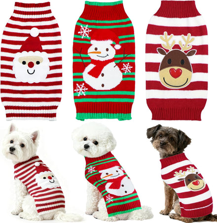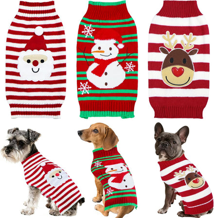 - Dog Christmas Sweater: The package includes 1 red and white dog Christmas sweater with cute santa pattern, 1 red and green Christmas dog sweater with snowman and snowflake pattern, and 1 red and white dog sweater with reindeer pattern. They're the chilling picture-ready outfits to make your dog the star of the Christmas and New Year photos.
