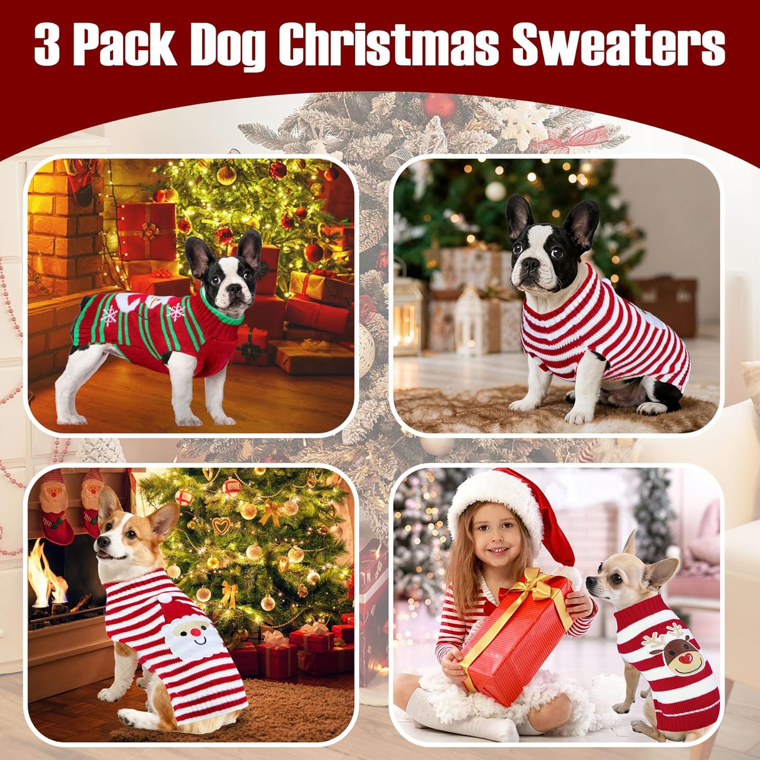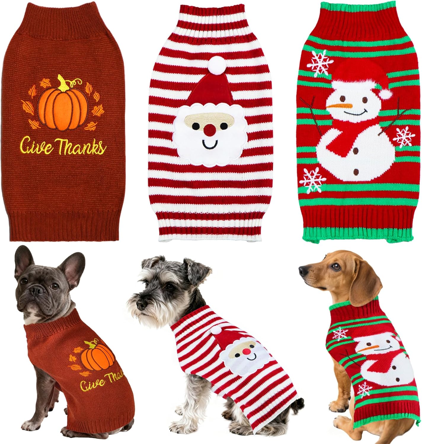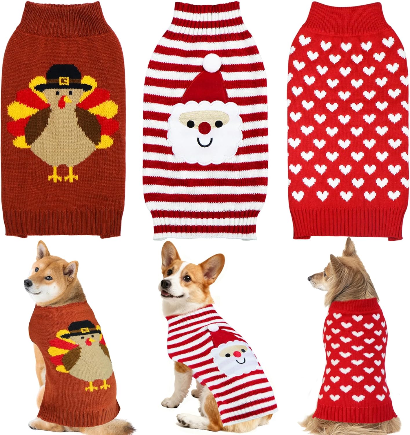 - Dog Christmas Sweater: The package includes 1 red and white dog Christmas sweater with cute santa pattern, 1 red and green Christmas dog sweater with snowman and snowflake pattern, and 1 red and white dog sweater with reindeer pattern. They're the chilling picture-ready outfits to make your dog the star of the Christmas and New Year photos.