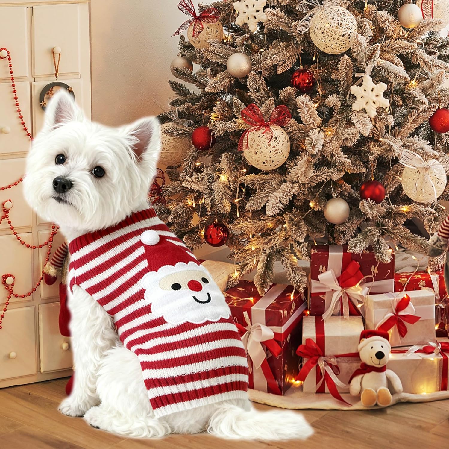 - Ultra-Soft & Warm Acrylic Materials: Crafted from high-quality, skin-friendly acrylic yarn, these dog sweaters for Christmas provide exceptional warm without the itch. The soft, stretchy knit offers a comfortable, snug fit that keeps your pup cozy and content during Christmas holiday gatherings.