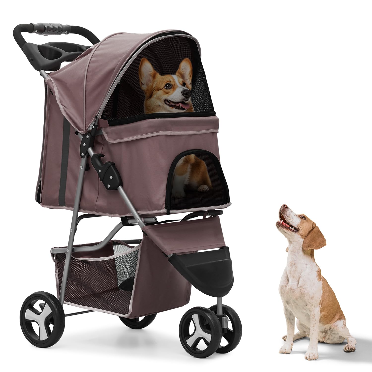 Give your pet the ultimate travel experience with the CAAP DRIVEN 3-Wheel Foldable Pet Stroller! Designed for small to medium dogs and cats, this stroller combines portability and durability with a collapsible frame, breathable mesh windows, and a weather-resistant cover. Features include swivel front wheels for smooth navigation, a secure braking system, and ample storage with cup holders and a basket. Perfect for walks, vet visits, or travel, it folds compactly for easy storage.