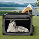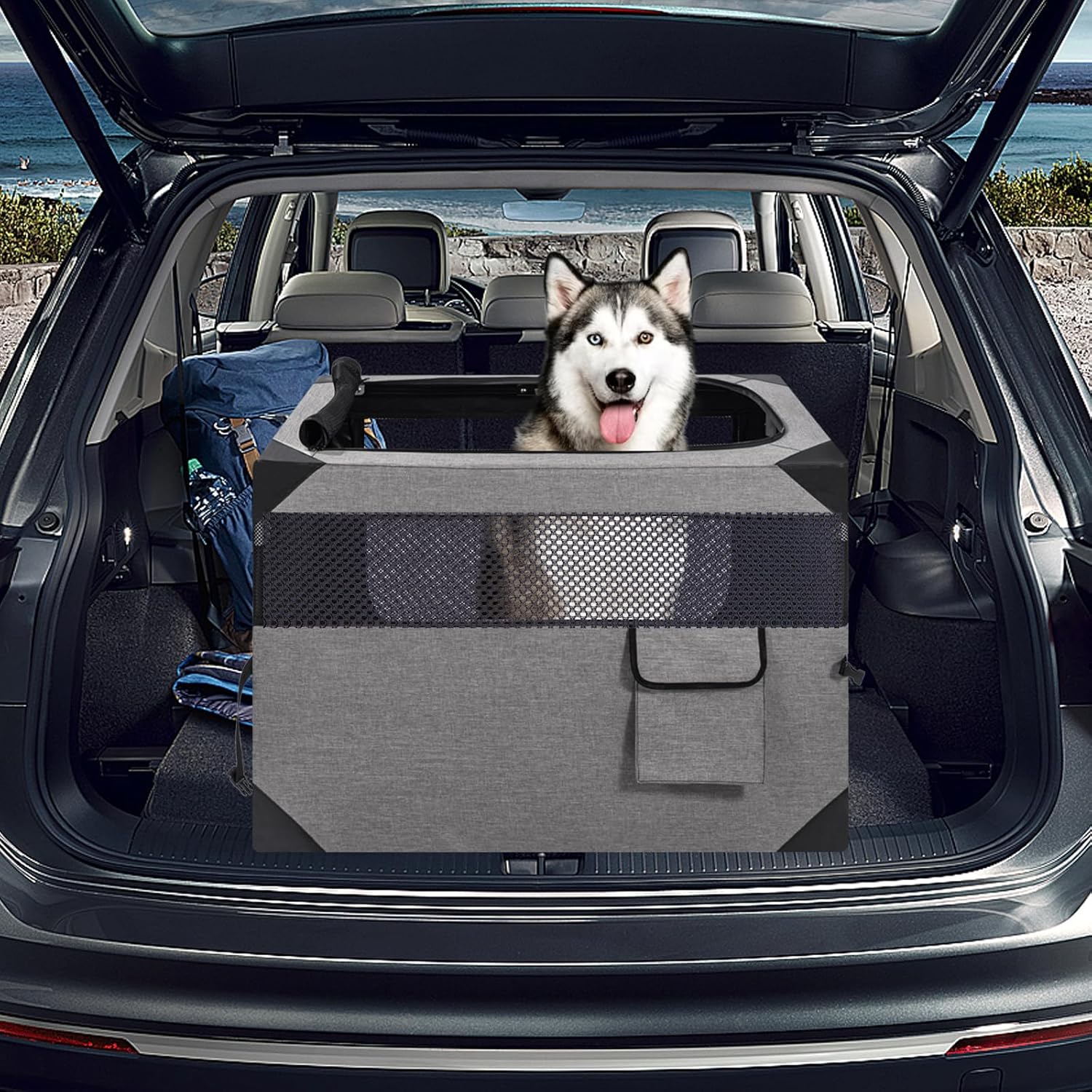 - The escape-proof dog crate has 3 zippered doors to provide your pet with multiple ways to get in and out.5 high-density mesh windows are durable and provide excellent visibility and ventilation. Roll up and secure the mesh door with velcro to increase air circulation and also check on your furry friend.