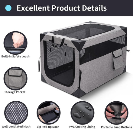 - The dog crate features a built-in safety leash that attaches to your dog's collar to ensure they stay safely inside!