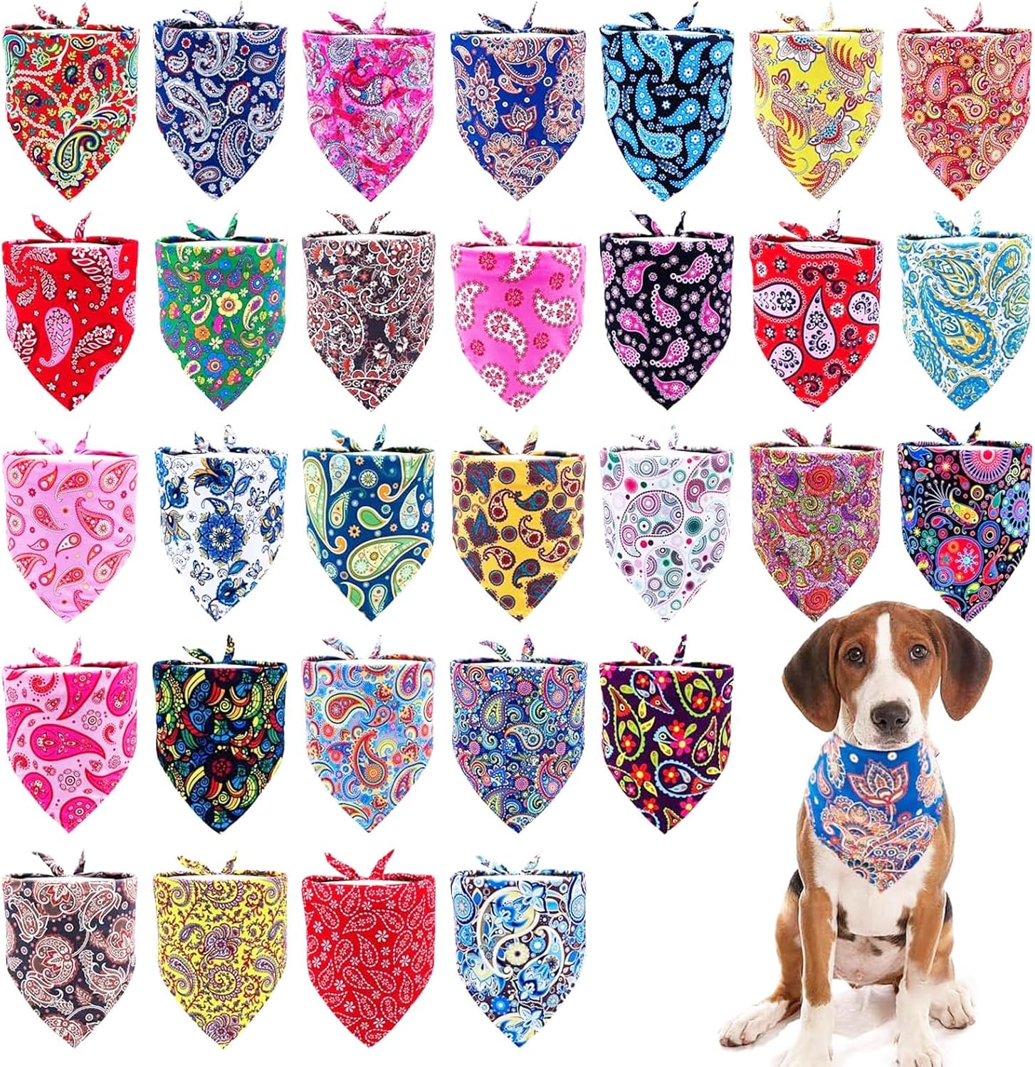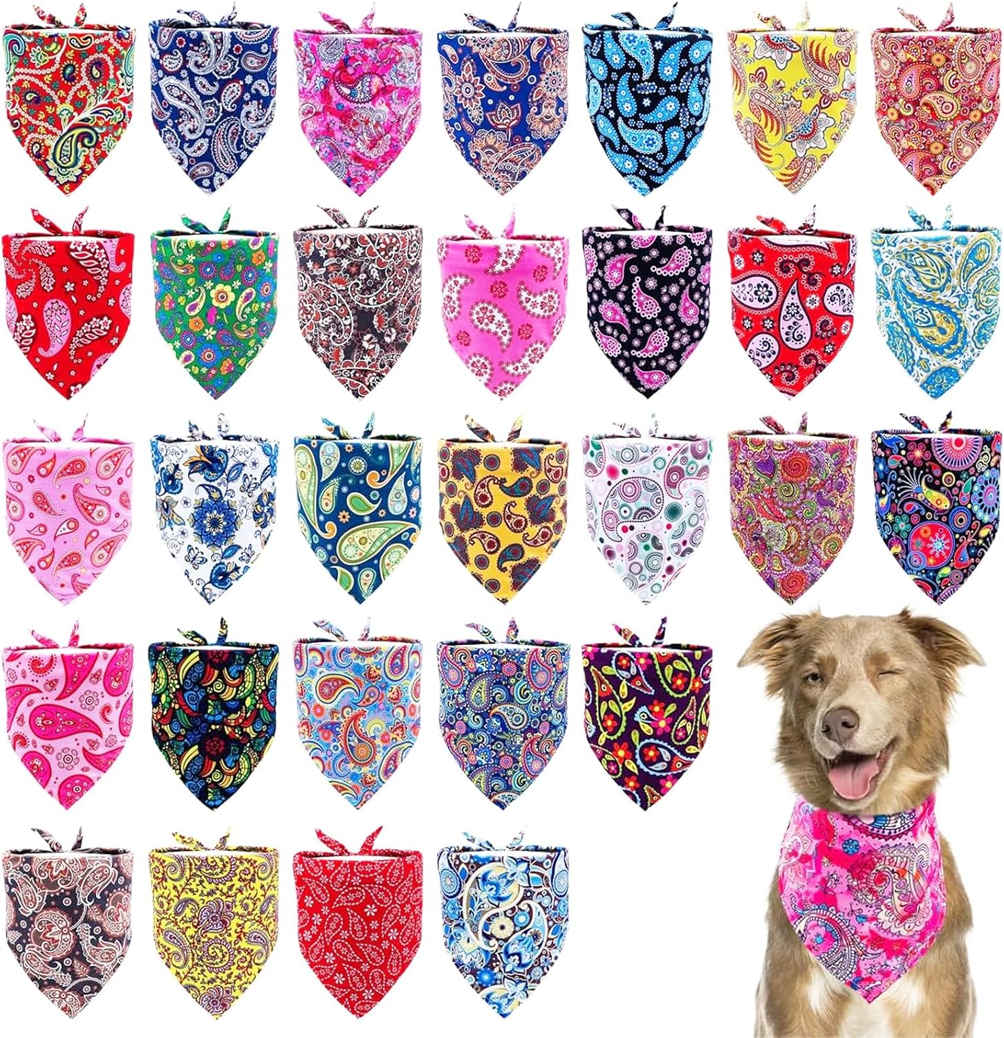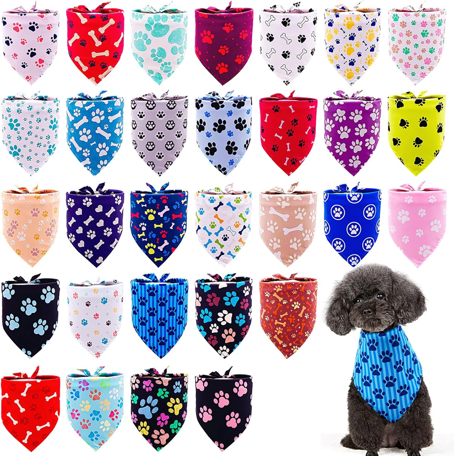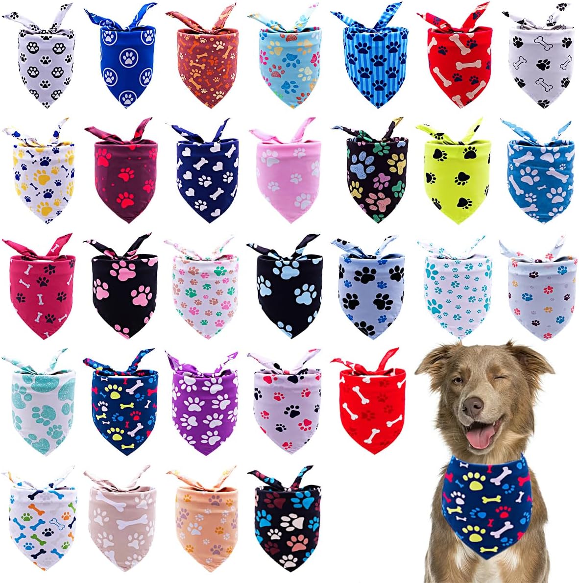 30 Pcs Paw Print Dog Bandanas Bulk for Large Dogs 33 Inch Stitch Dog Bandana Party Grooming Adjustable Scarves Triangle Bibs XLarge Pet Scarf L
