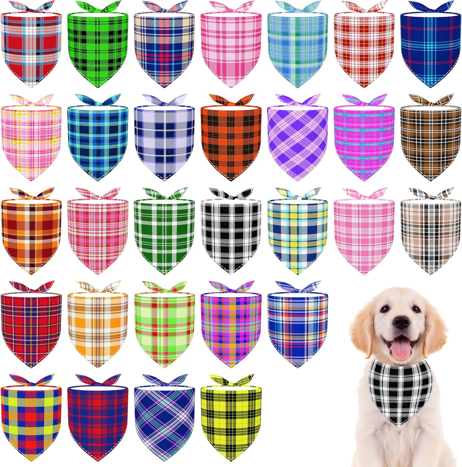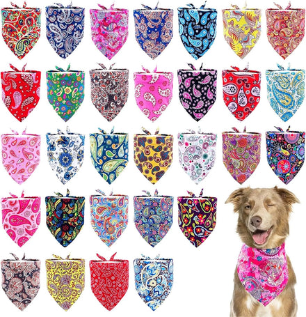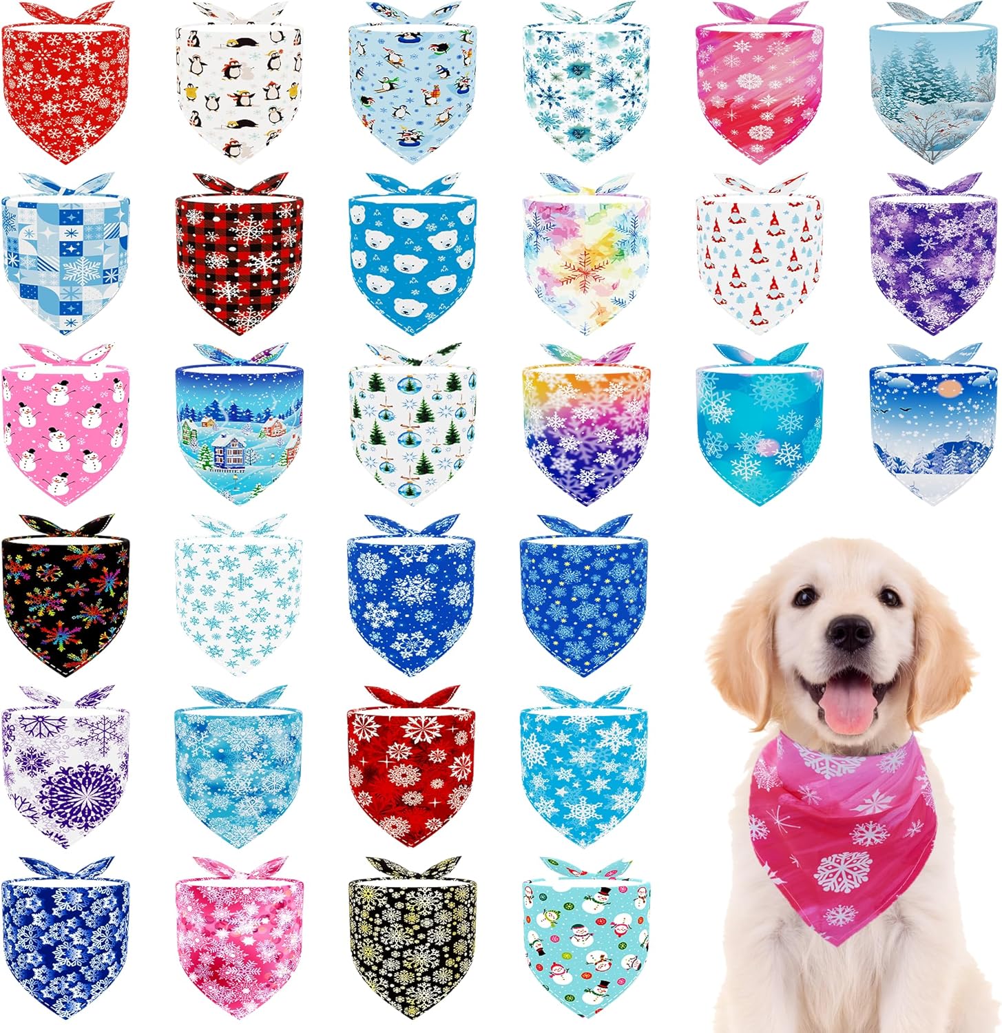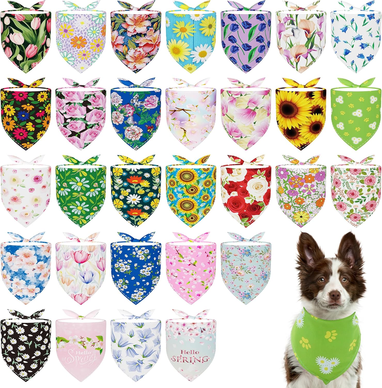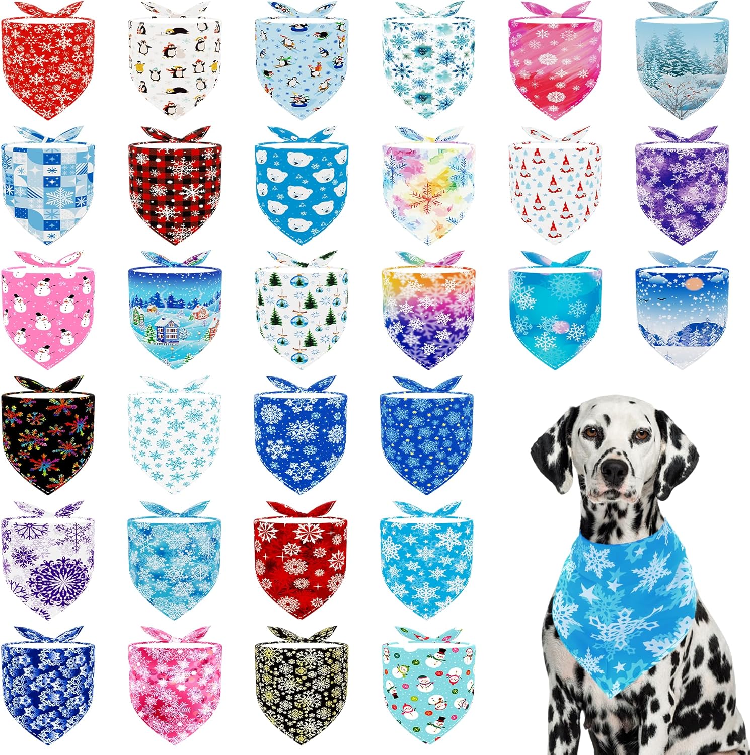 30 Pcs Paw Print Dog Bandanas Bulk for Large Dogs 33 Inch Stitch Dog Bandana Party Grooming Adjustable Scarves Triangle Bibs XLarge Pet Scarf L