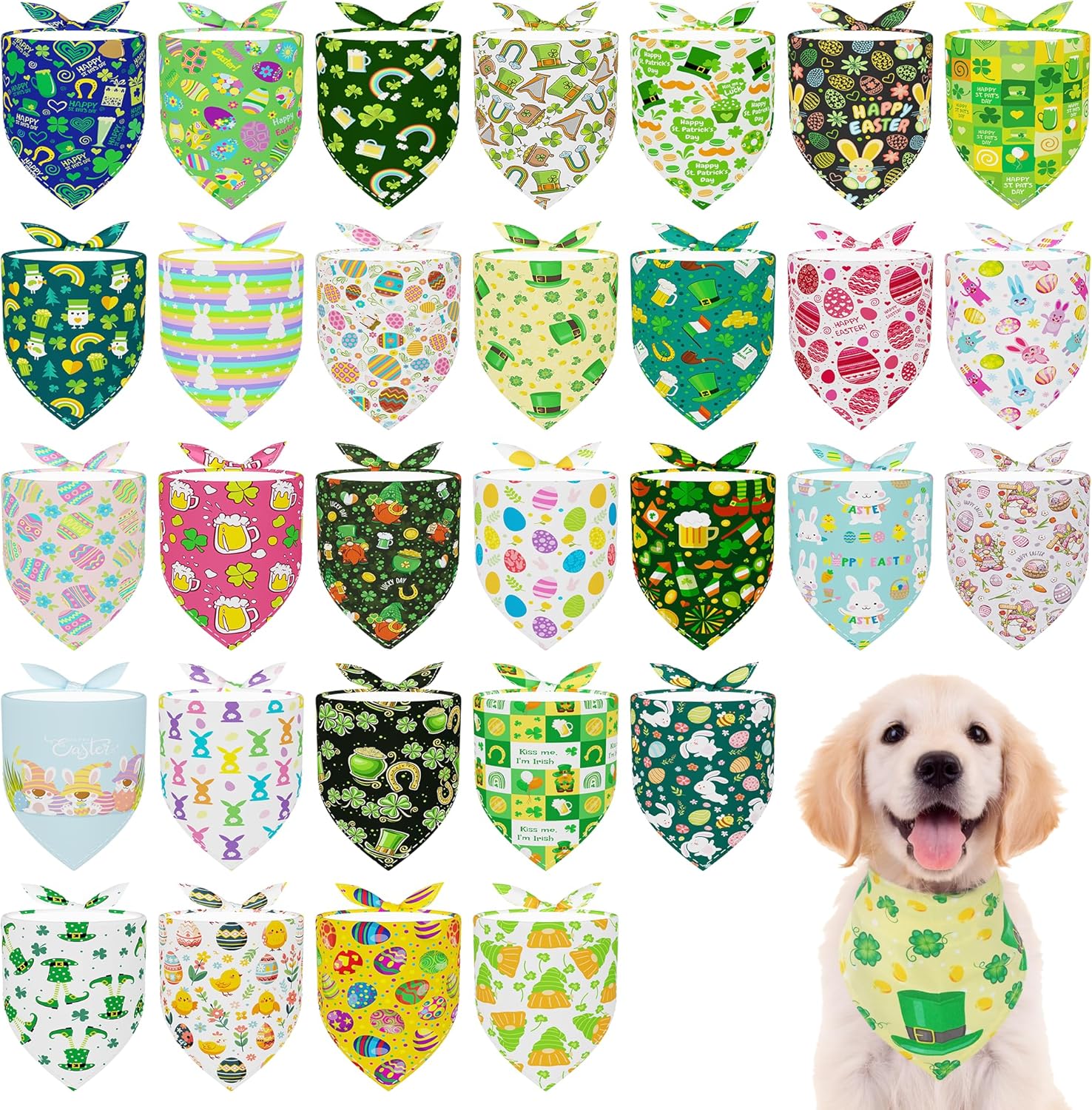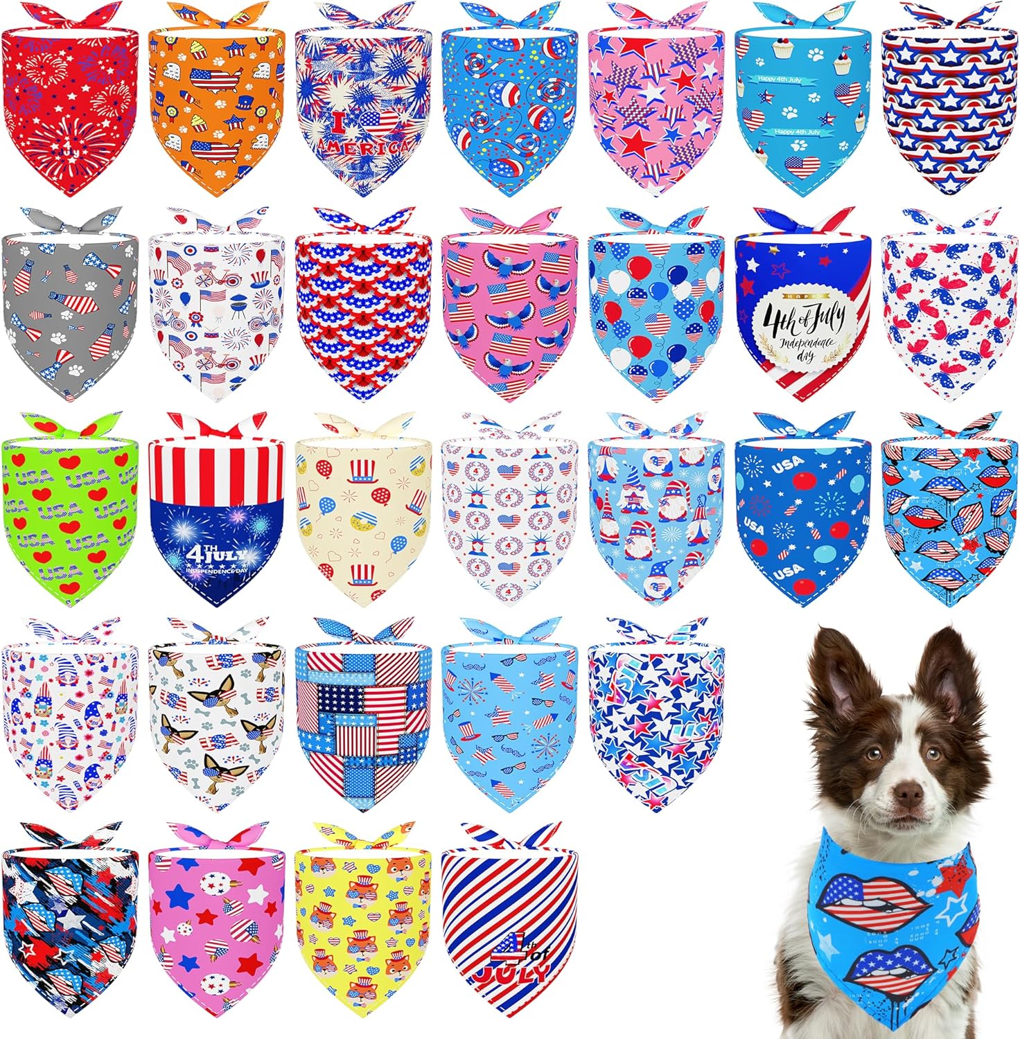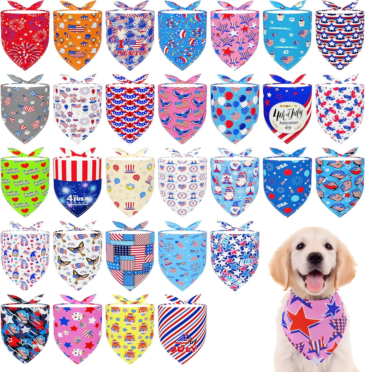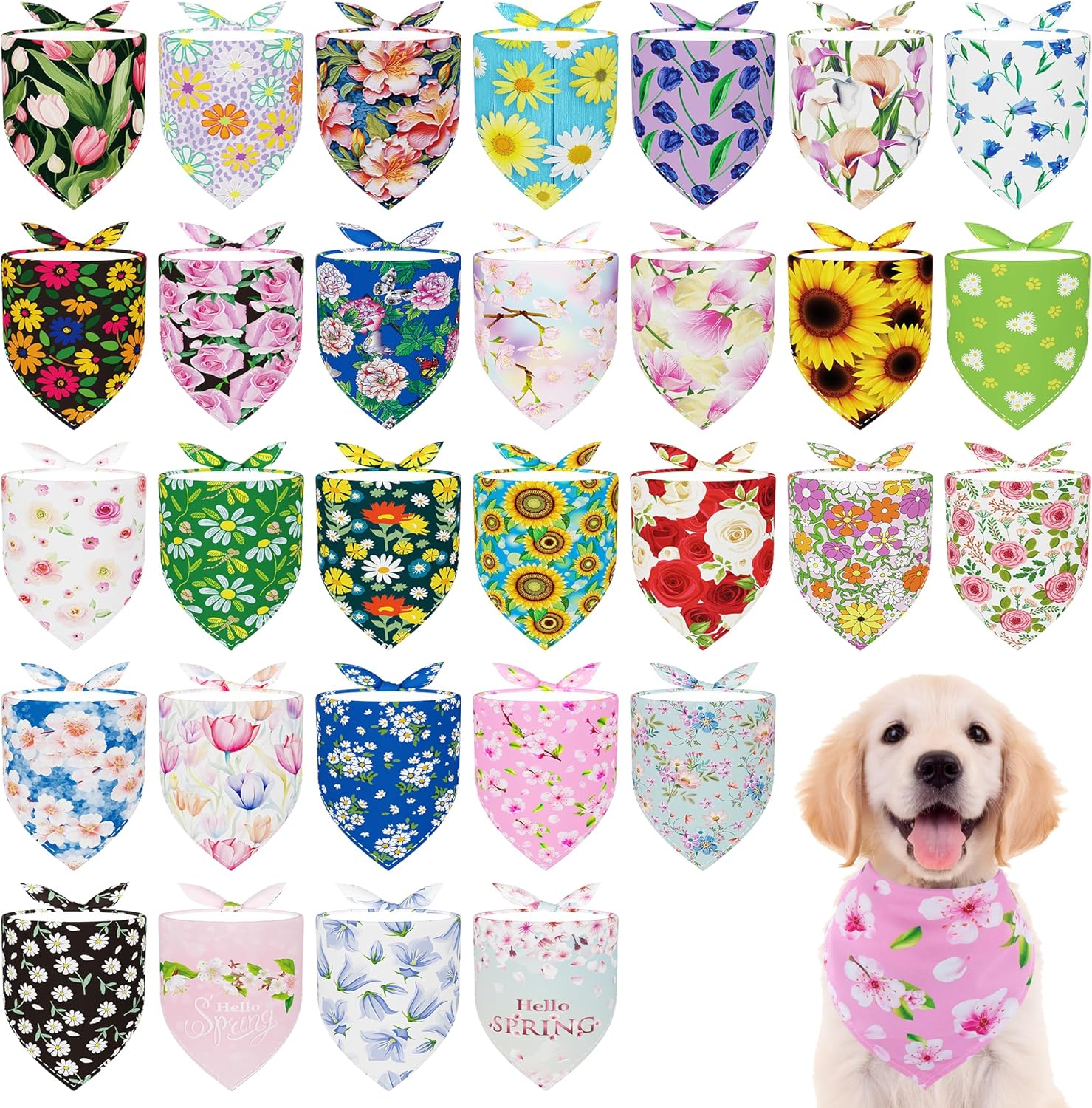 30 Pcs Paw Print Dog Bandanas Bulk for Large Dogs 33 Inch Stitch Dog Bandana Party Grooming Adjustable Scarves Triangle Bibs XLarge Pet Scarf L