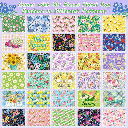 - 【Large Quantity & Variety Patterns】: You will receive 30 pcs bulk spring summer dog bandanas in 30 different adorable patterns, each pattern in 1 pieces. Enough quantity and diverse styles can meet your pets daily usage and replacement needs in spring, Easter, Mother's Day and summer, allowing you to dress up your pet, making your pet friends standing out from the crowd