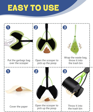 • 🌿 Clean Without Bending — Protect Your Back: Designed with a 32" long handle, this dog poop scooper lets you clean up while standing upright. Ideal for tall users, seniors, post-surgery recovery, or anyone with back or knee pain.