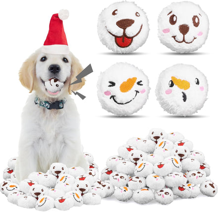 Get ready for Xmas fun! Receive 4 styles, total 32 Christmas plush dog toy balls with adorable and cozy smiley face. 32 Dog Squeaky Balls Set 60 Dog Squeaky Balls Set Stocking Dog Toys Set Stocking Cat Toys Set