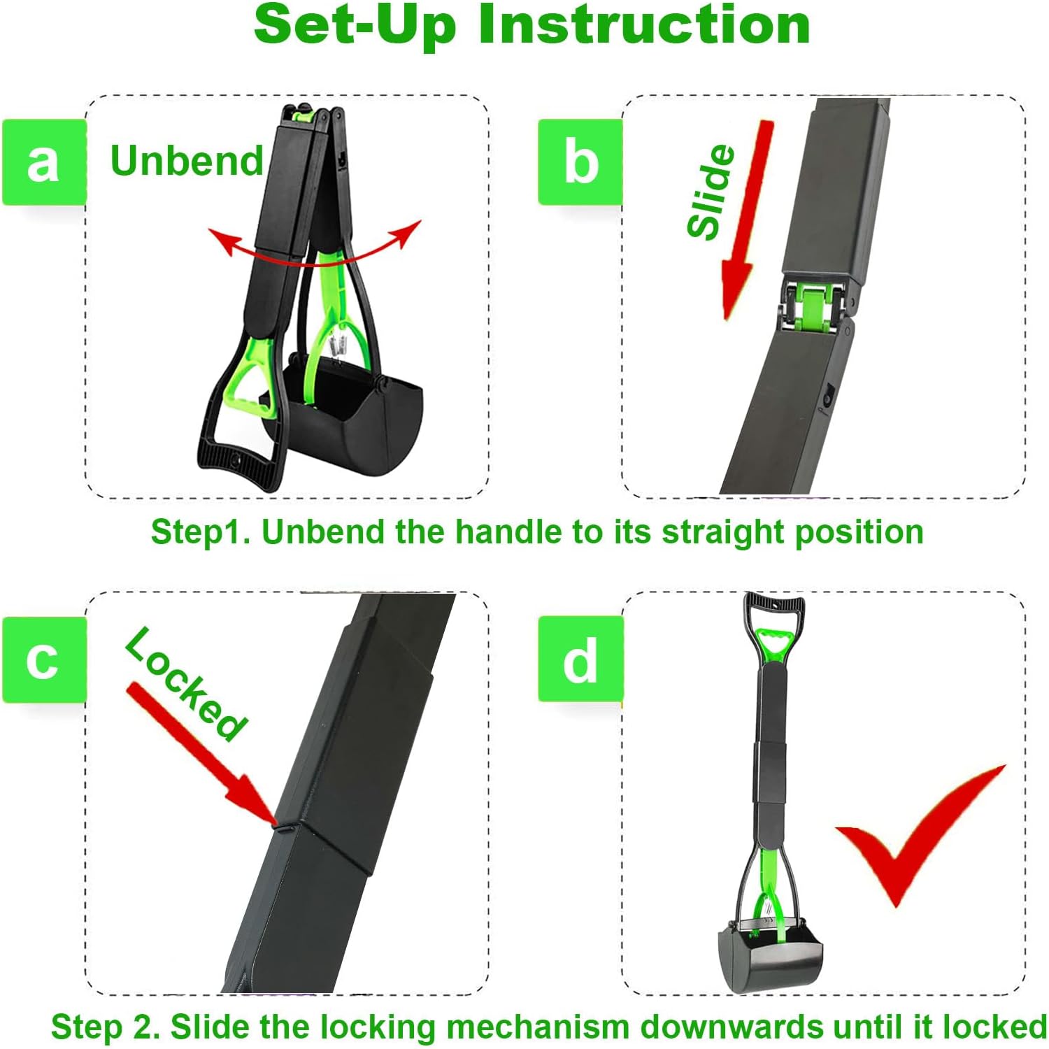 - 【Ergonomic Comfortable Design】One-handed operation,So-Easy to use,Easy-pull handle and two durable Stainless steel spring guarantee your effortless scooping action. 32 inches length pooper scooper is more better than 24 inches length one, it keeps you away from all the messes and stink, long handle ensures that most people don't have to bend down to clean up easily.