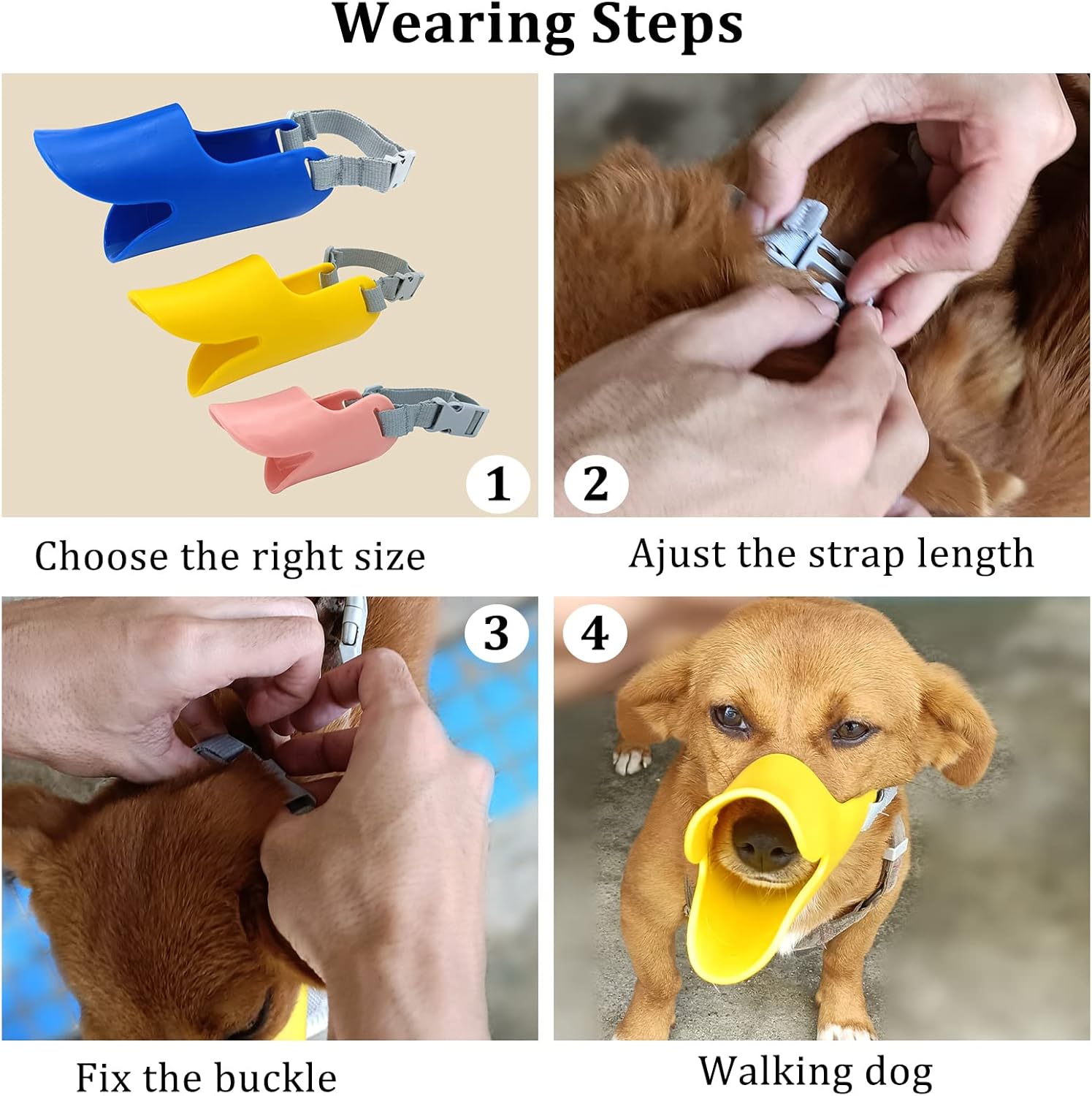 Why the Funny Duck Dog Muzzle Is Better? Designed to calm down dogs and the people who meet them. Use a humorous design to lift the spirits of your dog and the people around them. Reduces Aggressive Behavior-Your dog will be able to enjoy the fresh air like they normally would. Improves Dog Interactions-It allows them to see their surroundings with no obstructions giving them a calmer demeanor. Better Socialization-It will allow you and your dog to appear more approachable and friendly to those around you. Specifications: Type: anti-bite muzzle. Material: silicone. Shape: duck mouth. Features: soft, moderete,dog month cover, cute, anti-bite. Size details: S: Mouth Circumference: 12cm/4.7", Neck Circumference (adjustable): 13cm - 27cm/4.7" - 10.6", Mouth Height: 4.5cm/1.7" (Approx.). M: Mouth Circumference: 15cm/6.10", Neck Circumference (adjustable): 13cm - 33cm/5.1" - 12.9", Mouth Height: 6cm/2.3" (Approx.). L: Mouth Circumference: 16cm/6.2", Neck Circumference (adjustable): 17cm - 35cm/6.6" - 13.7", Mouth Height: 7.5cm/2.9" (Approx.). Package include: 3 x Dog muzzle.