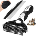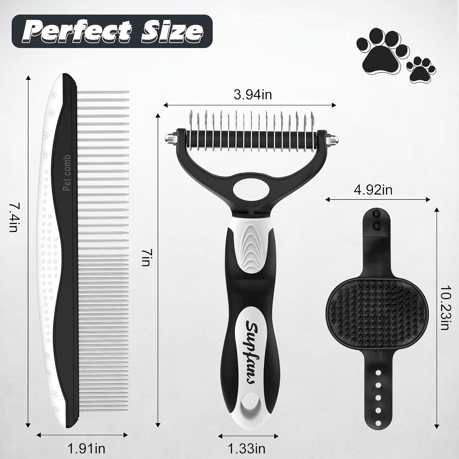 - 【3PCS Pet Grooming Kit】Dog Deshedding Brush that makes professional pet groomers recommend is made of premium stainless steel metal and soft TPR rubber material, safe, comfortable and durable. Not only can it effectively de-fur and de-tangle, but also relieve your pet's skin problems and make your pet's coat shiny and healthy.