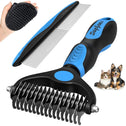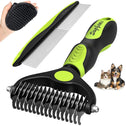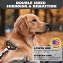 - 【Undercoat Rake】Our undercoat rake is perfect for de-shedding and de-matting medium to long-haired pets. Featuring a double-sided design, the 9-tooth side can be used for stubborn mats, tangles and knots, while the 17-tooth side can be used to thin and remove loose hair from dogs and cats.