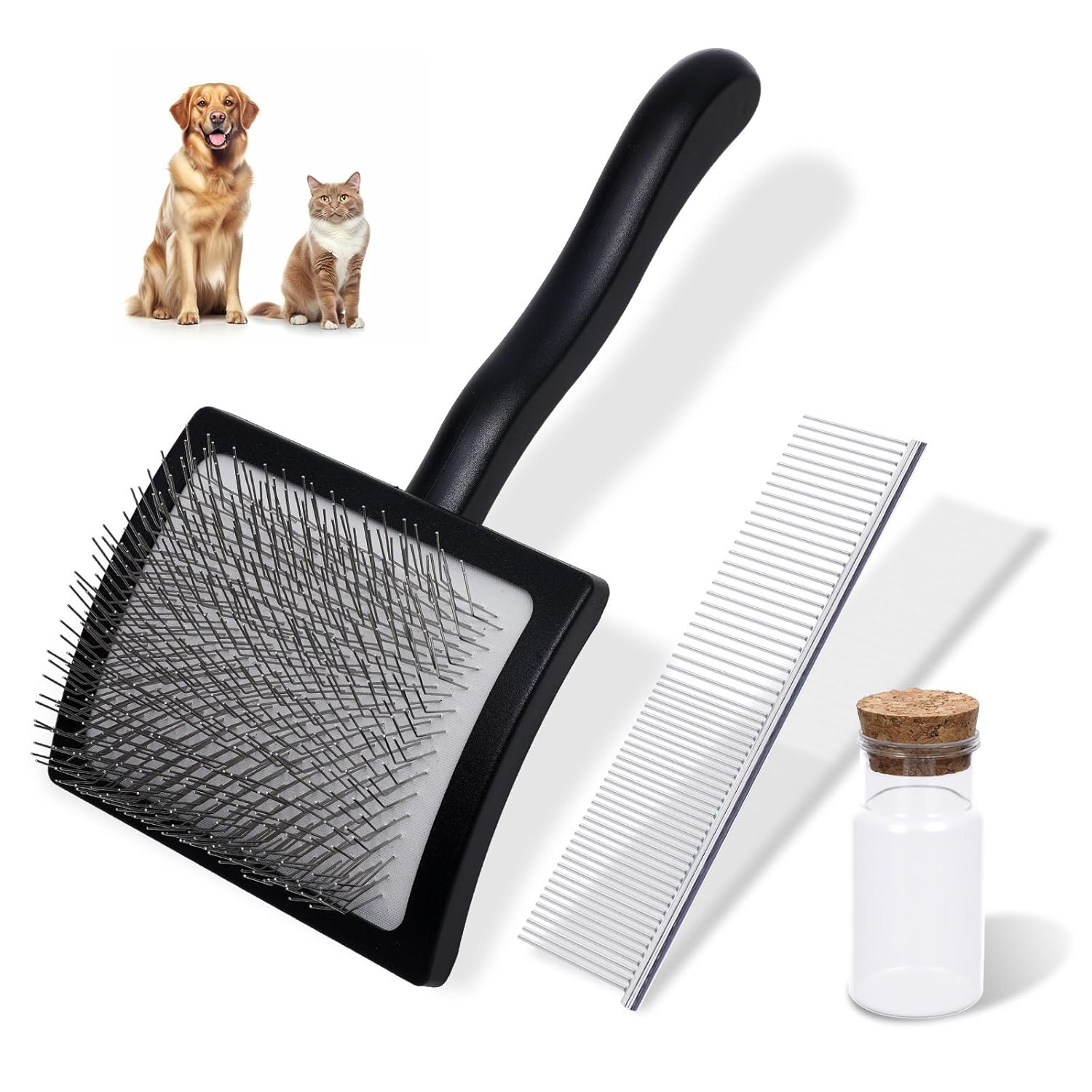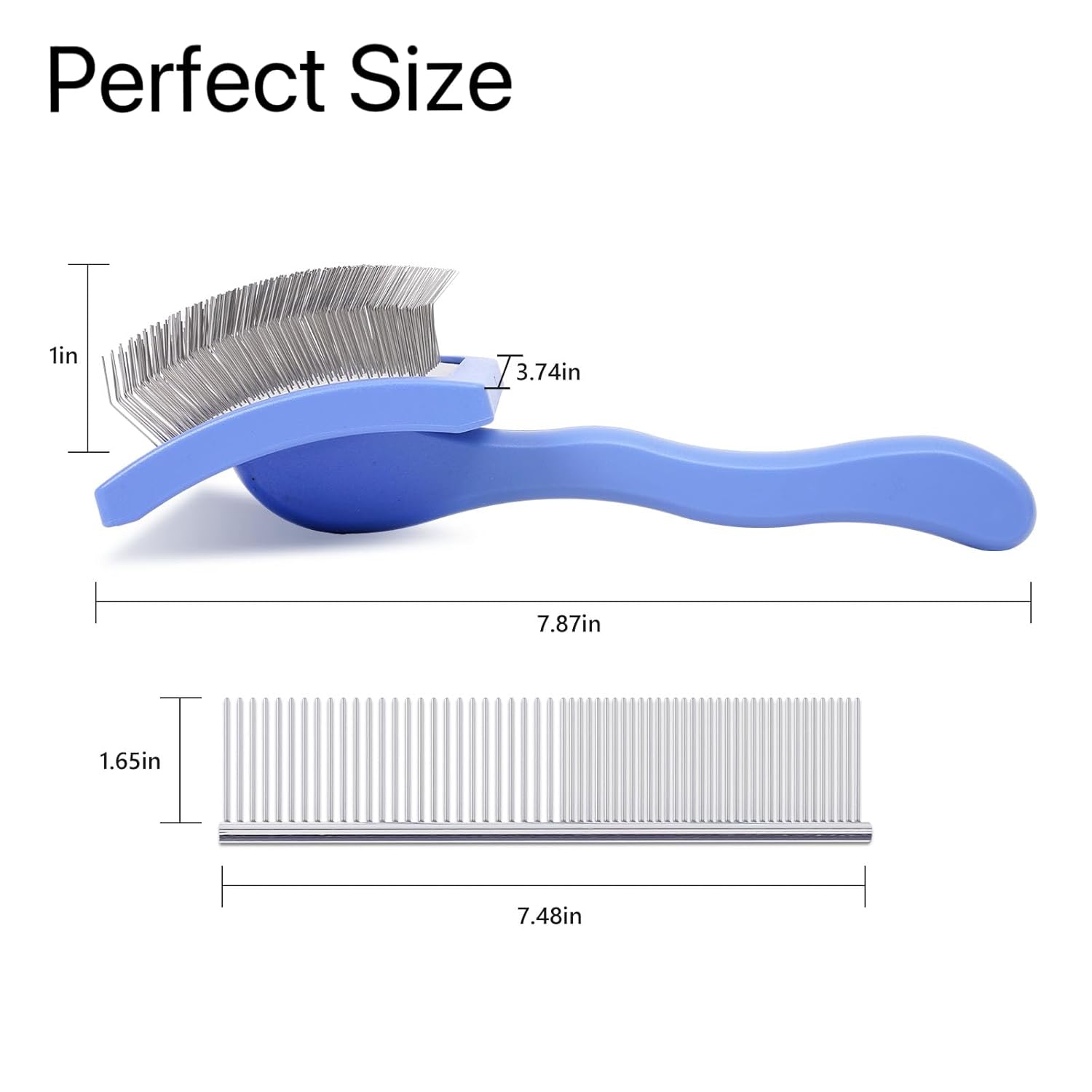 - 【Premium Dog Grooming Kit】Owning a professional dog slicker brush and a comb, you can effectively remove tangles, knots, and mats, significantly reducing brushing and drying time. Let you, as the groomer, give your furry companion a shiny, healthy coat - Essential items for furry pets