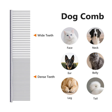 - 【High Quality Dog Comb】this high-quality dog comb is durable, corrosion-resistant, and will not fade, helping to avoid static electricity. The rounded and smooth comb teeth eliminate the potential danger of scratching the dog's skin, allowing the dog to enjoy a comfortable process while grooming, making the dog's hair soft and shiny, and maintaining a high appearance at all times. In addition, it can also be used to help clean the hair on a dog's brush.