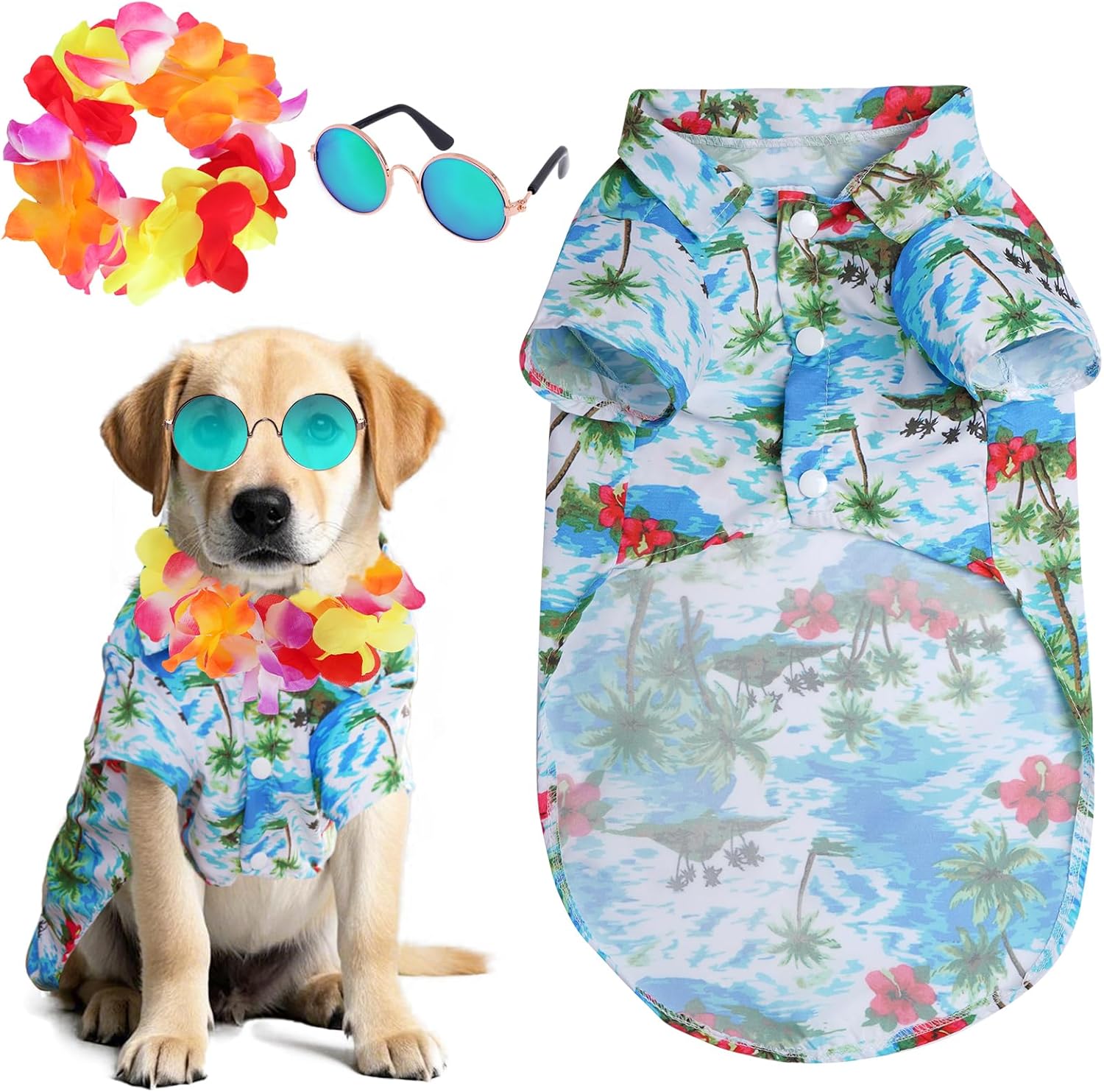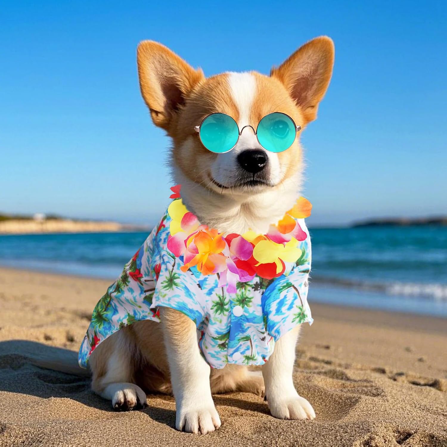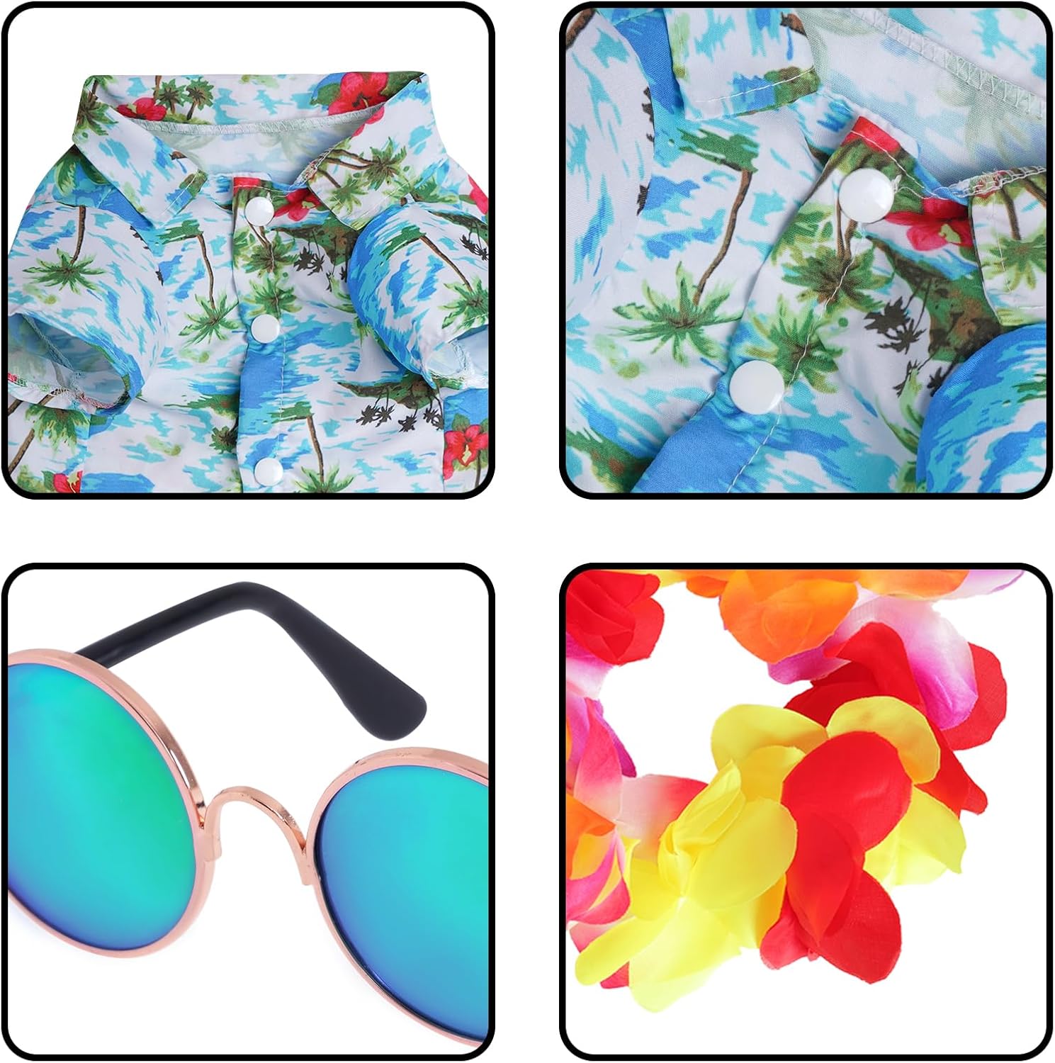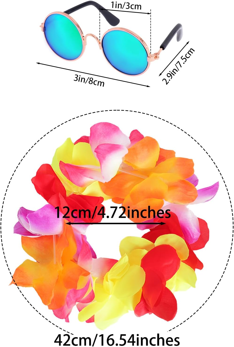 - STYLISH PET OUTFIT SET:Our costume for dogs comes with a hawaiian dog shirt , fashionable pet glasses, and a colorful wreath. Ideal for daily wear, photoshoots, and performances