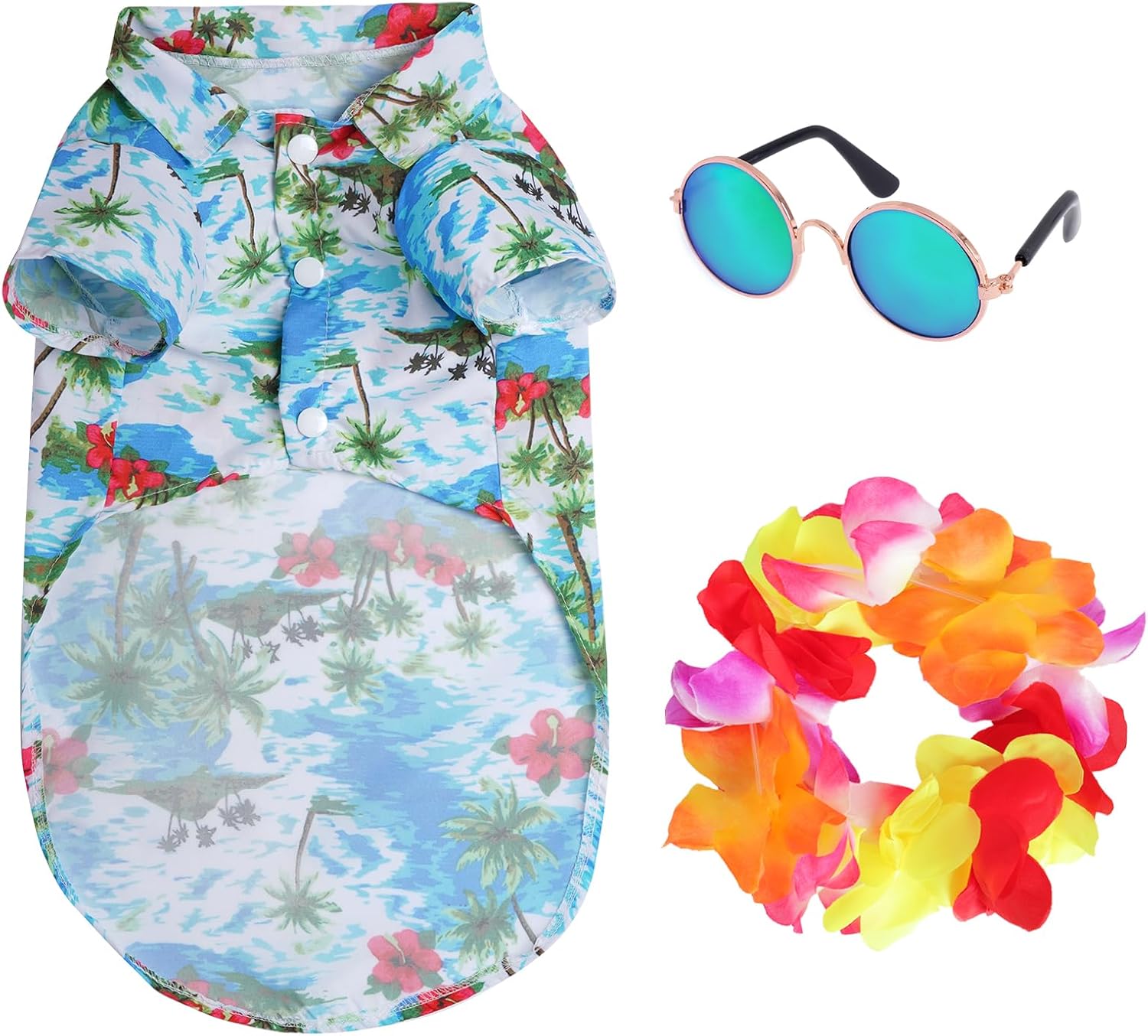 Product Specification : Quantity :3Pcs Color :Multicolor Material :Cotton Size : Collar Circumference: 36 cm (14.17 inches) Chest Girth: 55 cm (21.65 inches) Back Length: 45 cm (17.72 inches) :More Information Perfect for Every Occasion:Whether you're heading to a beach party, celebrating a birthday, or capturing precious memories in a photoshoot, this hawaiian dog shirt set adds instant charm to any event. The versatile design is also great for cosplay, pet parades, or simply making your pet the most stylish companion on the block. The breathable fabric keeps them cool during summer outings, while the vibrant colors ensure they stand out in every crowd Comfort & Convenience:Designed with your pet's comfort in mind, the hawaiian dog shirt's lightweight fabric and flexible closures allow for unrestricted movement, while the adjustable wreath and glasses ensure a secure fit without irritation. Perfect for dogs, cats, and other small animals, this outfit set balances fashion with functionality for all-day wear. Pro Tip: Ensure the perfect fit to guarantee your pet's maximum comfort and a stylish look that fits like a dream, always take precise measurements of their chest and back before placing an order.A well-fitted shirt not only boosts their confidence but also allows for unrestricted movement, whether they're chasing frisbees at the beach or simply lounging in birthday party glory.