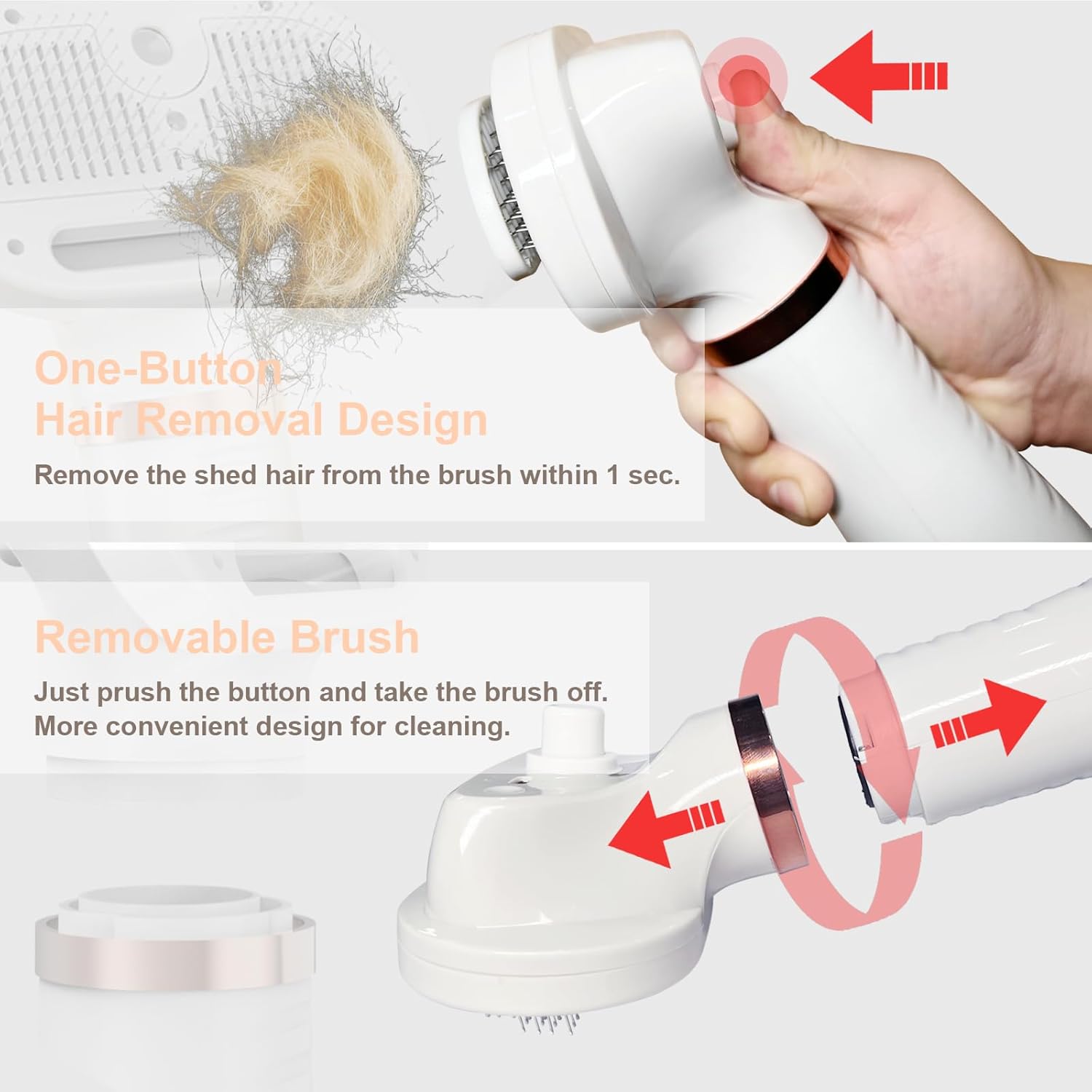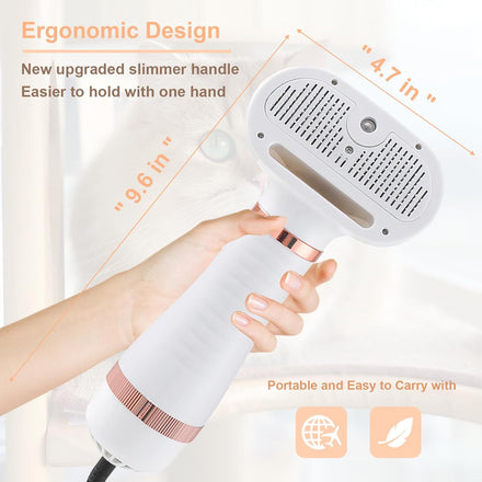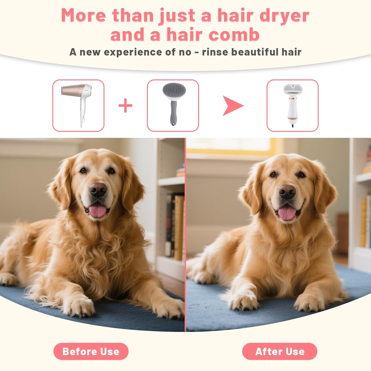 The 4 in 1 pet grooming dryer is combined dog hair dryer with hair comb brush, it can make much easier to dry your pet after bathing, a slicker brush to remove tangles and loose fur, to keep pet's hair soft and neat. Great for dog hair brush at home, fast drying and beautiful grooming, more convenient and time saving.