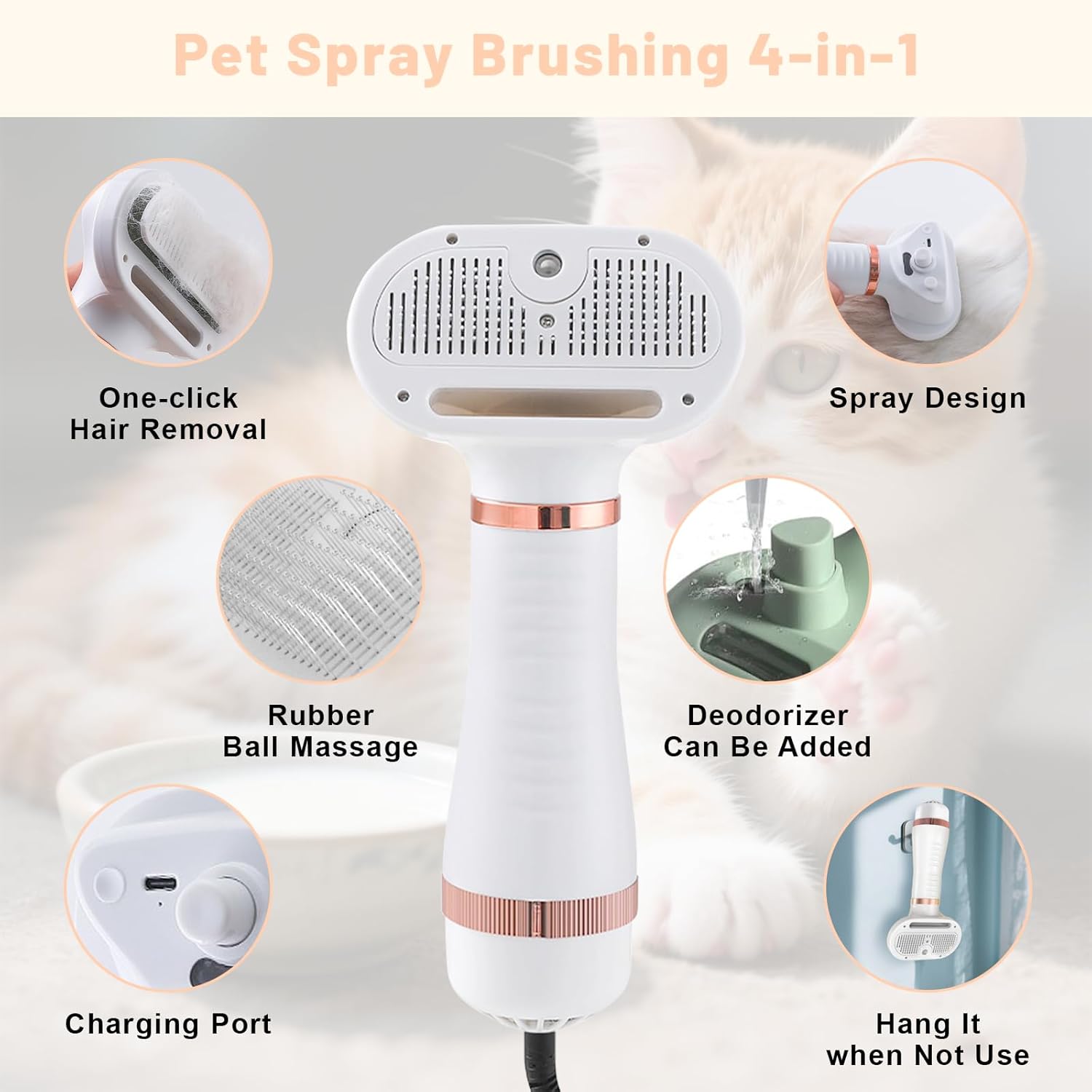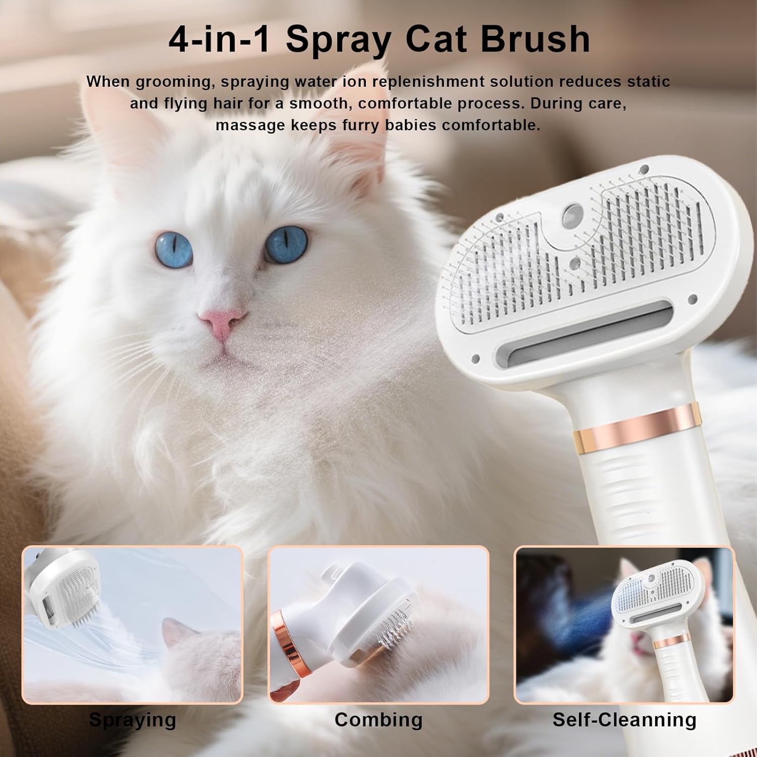 - 【4-in-1 Grooming Tool】Multi-functional pet grooming tool that combines the functions of hair removal, cleaning and massage. While removing hair, clean dirt from hair and skin. Let you don't need to worry about cleaning your beloved pet every day. Note: Our cat brush only converts water into spray and does not heat it