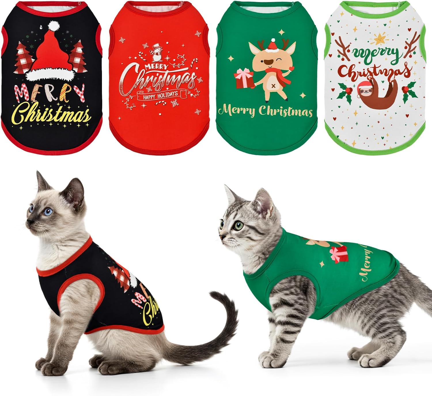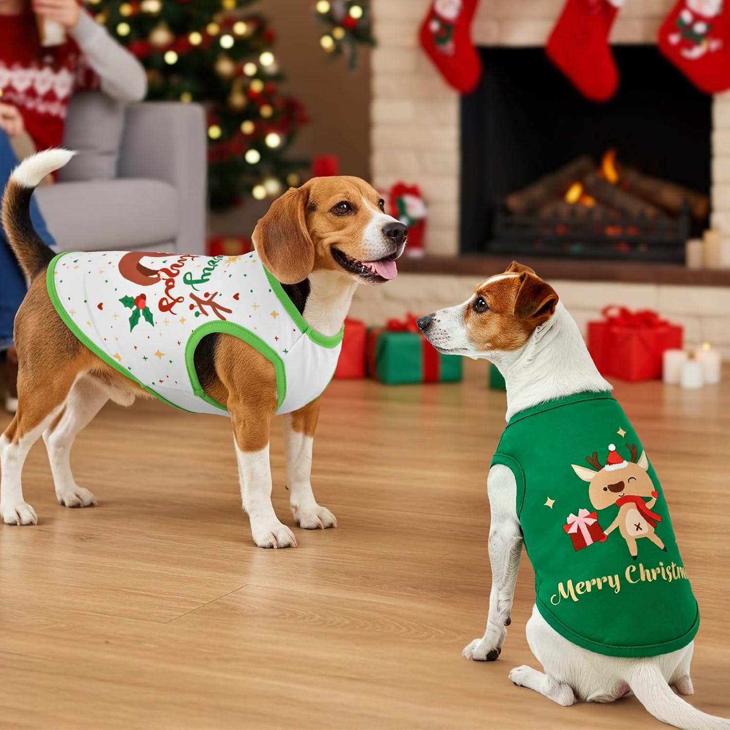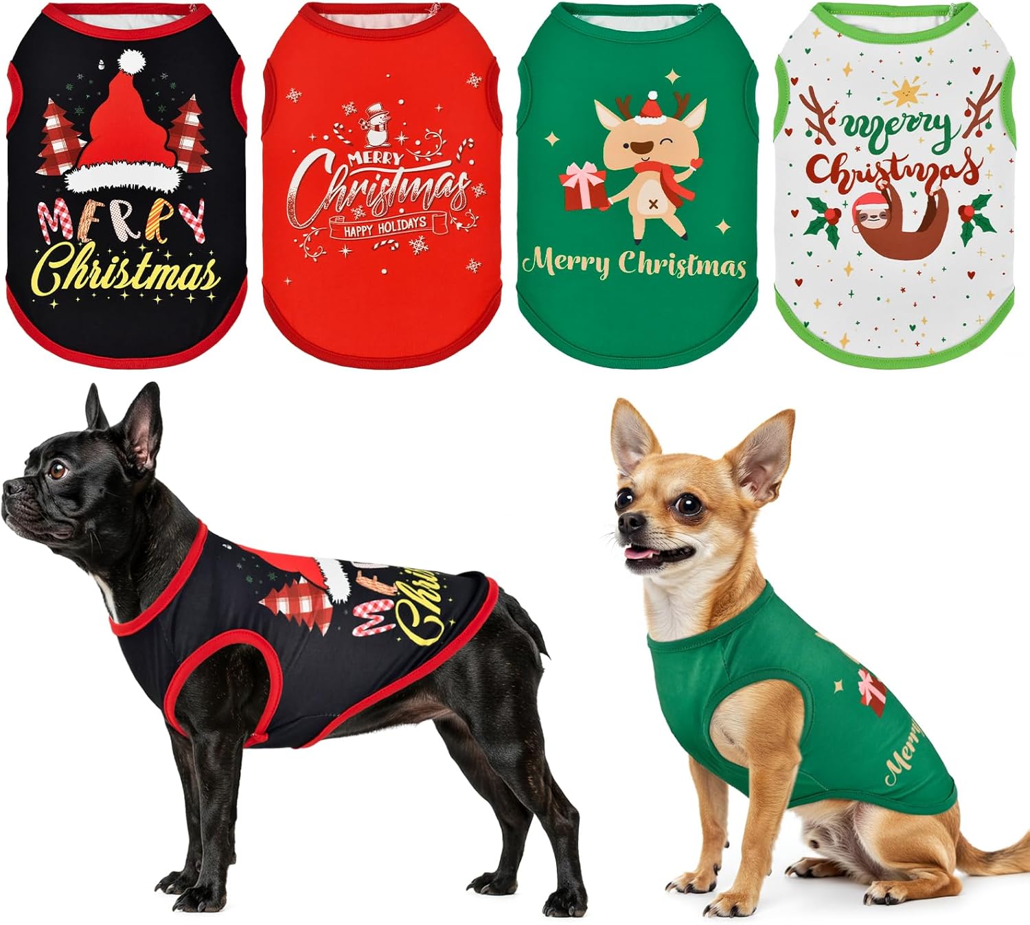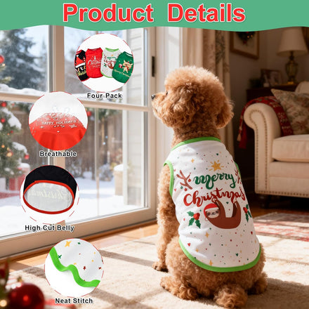 4-Pack Christmas Dog Shirt for Small Doggies Dog Tank Top Tee Shirts Xmas Pet Cat Sleeveless Vest Puppy Christmas Outfit Clothes Costume for Small Medium Dogs XL
