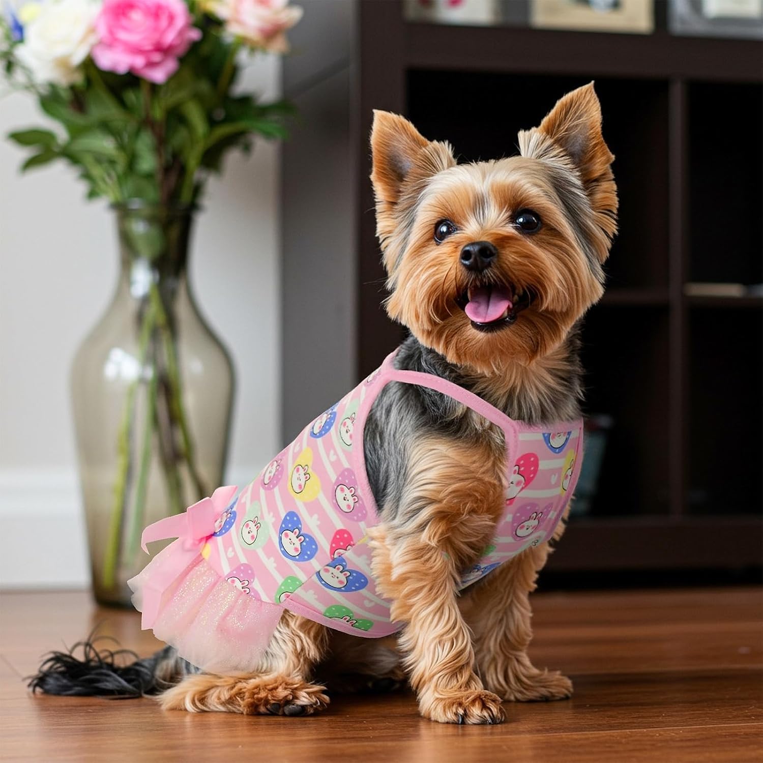 【Easy-to-Wear Slip Design】The slip-on design allows you to dress your pet quickly and effortlessly, while ensuring a snug and secure fit for active little ones. The hemline is crafted from a soft gauze material, adding a touch of elegance and enhancing its overall aesthetic appeal.