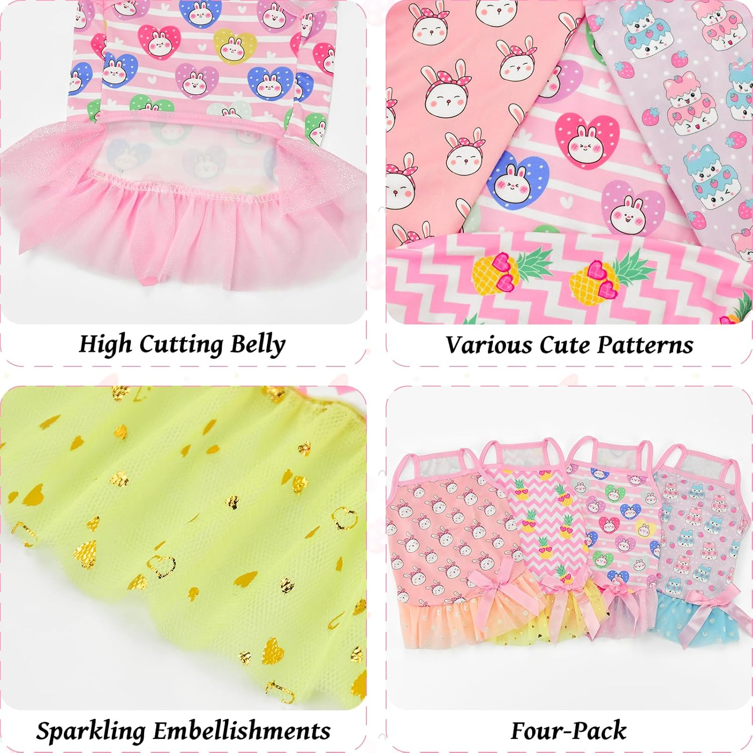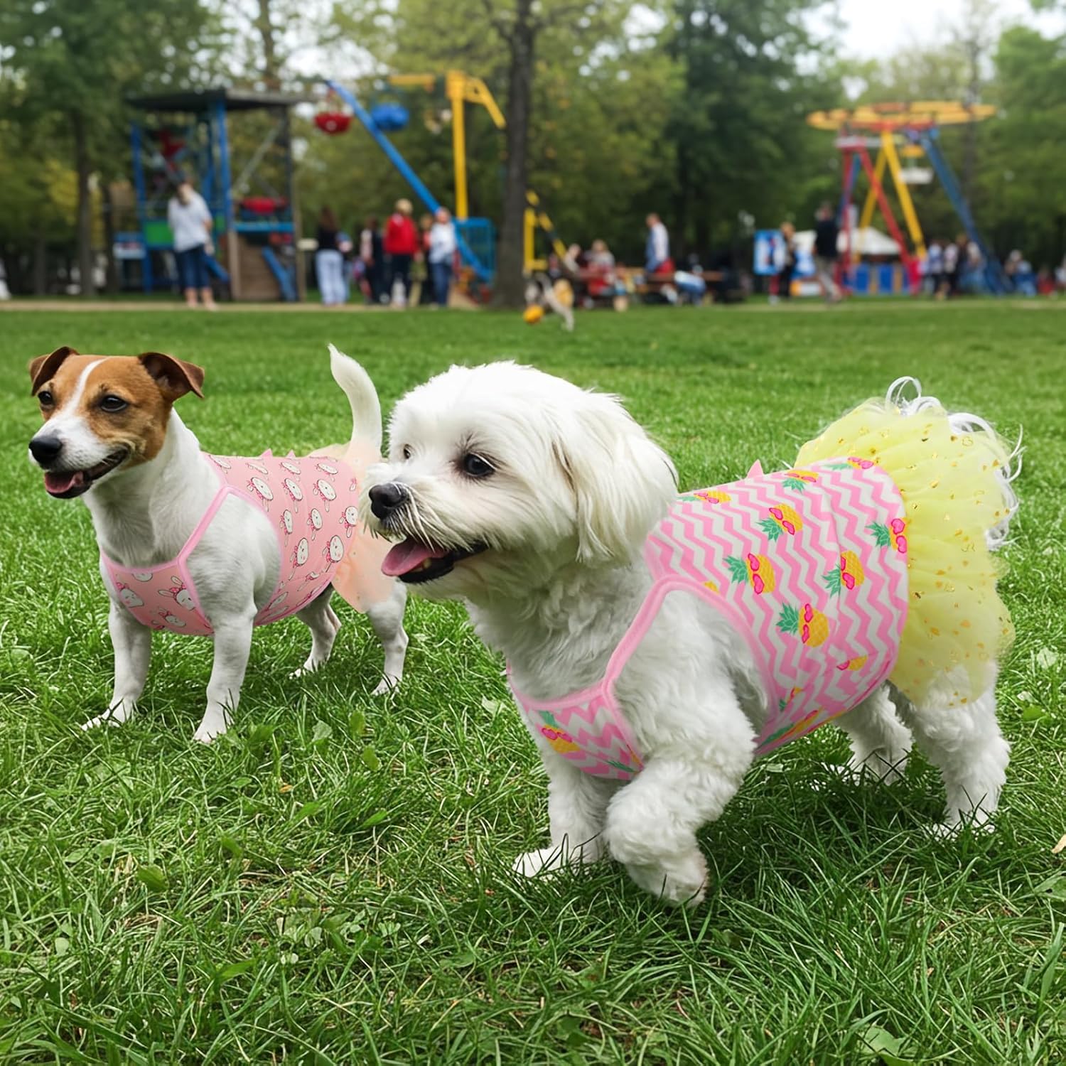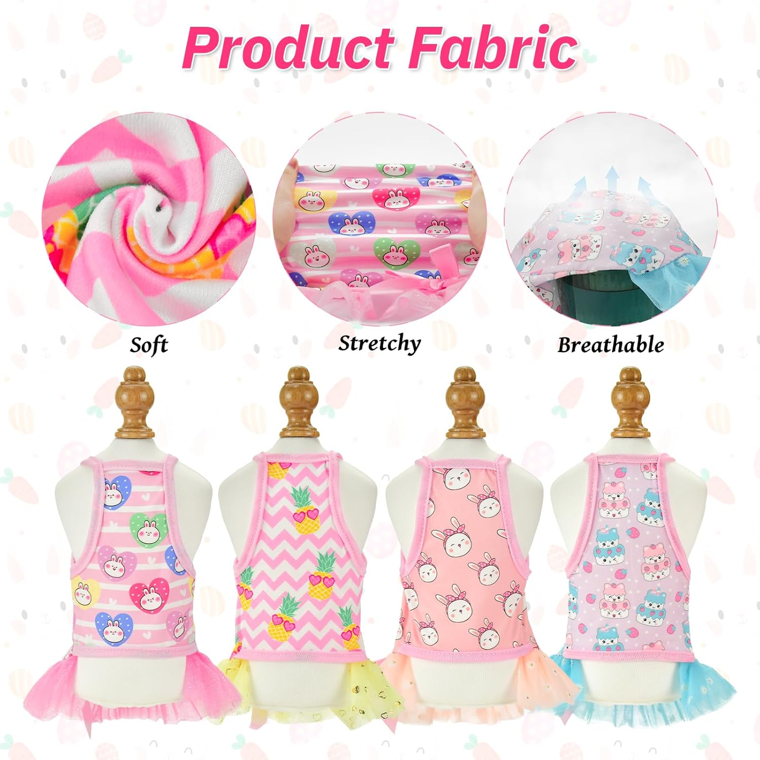 【Unique Hand-Painted Patterns】Each pack comes with 4 adorable dog slip dresses, each featuring charming hand-painted designs. The collection includes a cute cartoon rabbit design, a delightful pineapple pattern, and a sweet cake motif, adding a playful artistic touch to your pet's summer wardrobe.