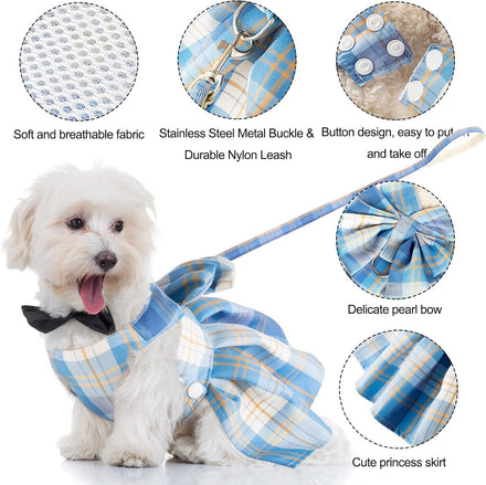 - Ideal Set: you will receive 4 plaid dresses for dog with leashes, featuring 4 different colors: pink, sky blue, navy blue and claret red, elegant and fresh, sufficient quantity and rich colors to meet your needs for daily wear and replacements, which will be an ideal gift choice for your pets; Also, you can share them with family members and close friends
