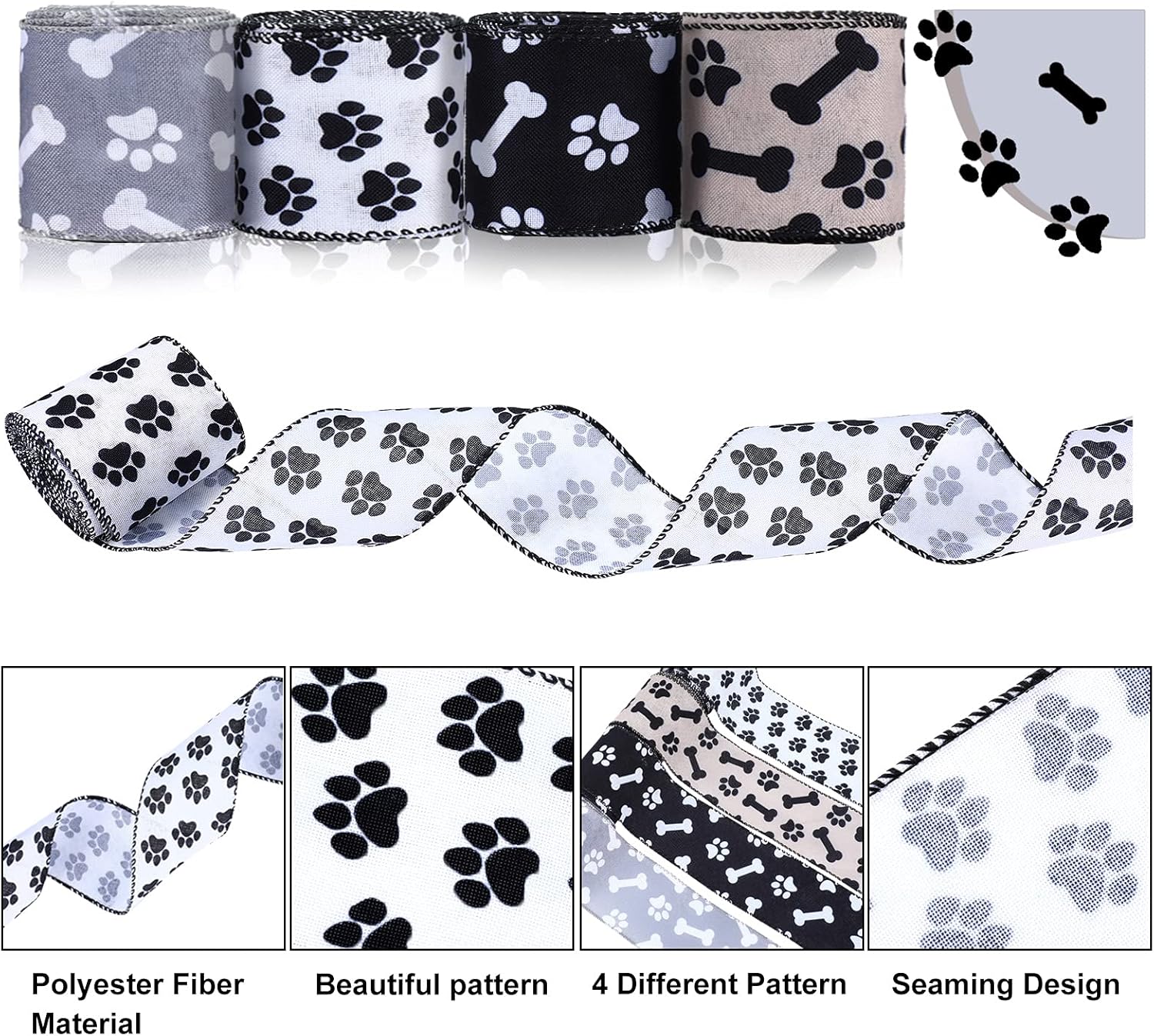 - 4 estilos: hay 4 rollos de cintas con estampado de patas en este paquete, disponibles en 4 diseños diferentes, cada rollo mide aproximadamente 2.5 pulgadas de ancho, 6.6 yardas de largo, 26 yardas de largo en total, suficiente longitud y patrones ricos para satisfacer tus necesidades diarias de embalaje de regalo y decoración diaria