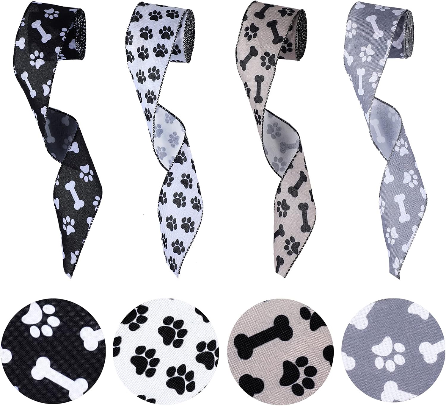 - 4 Styles: there are 4 rolls of paw print ribbons in this package, available in 4 different designs, each roll is about 2.5 inches wide, 6.6 yards long, 26 yards long in total, enough length and rich patterns to meet your gift packaging and daily decoration needs