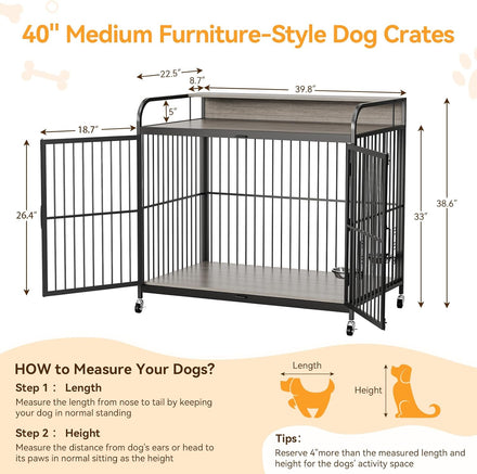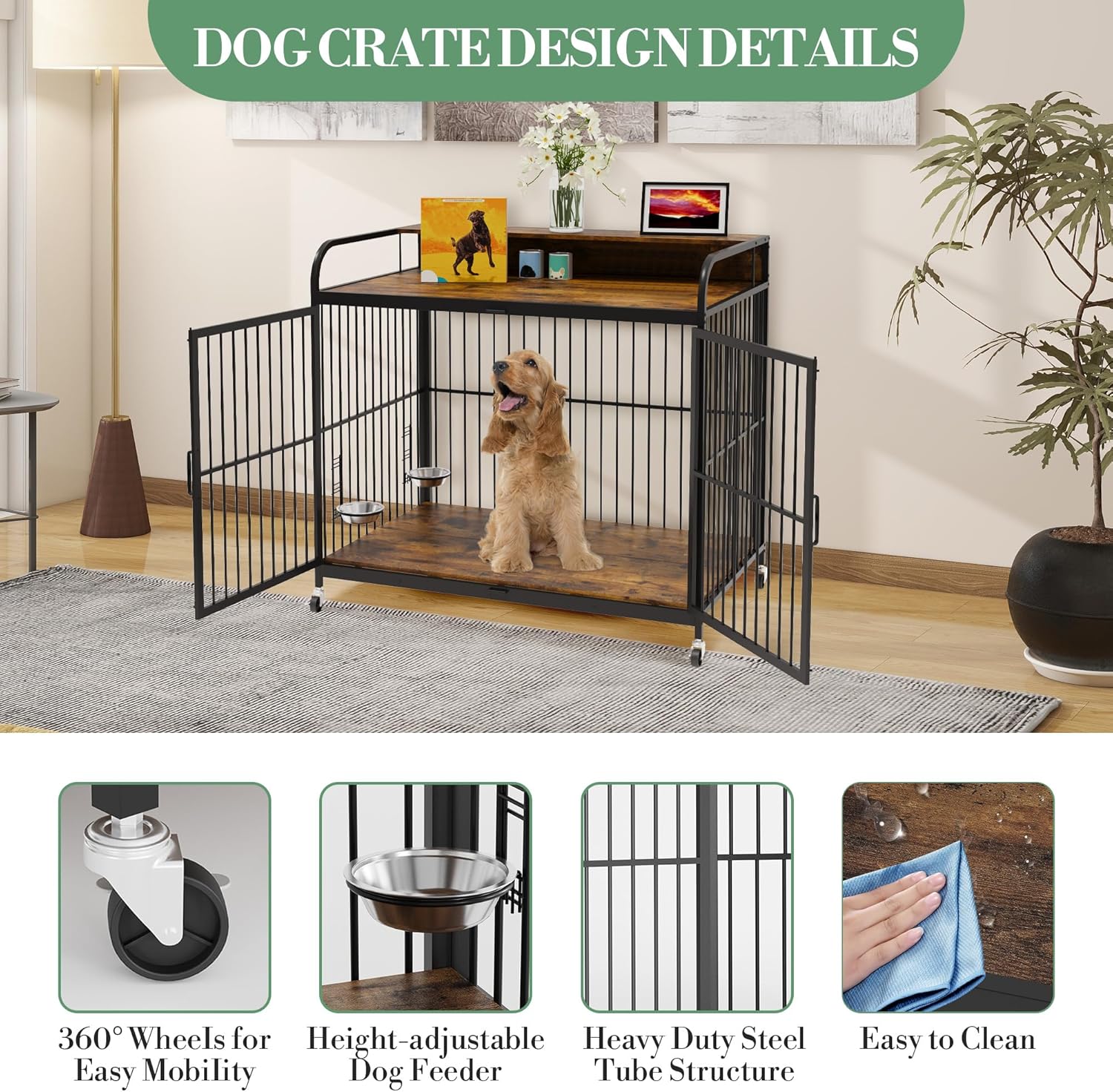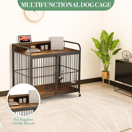 - Smart Space Configuration: Dog crate with wheels features locking casters for smooth relocation. Unlike traditional crates, this solution offers bonus storage shelf space above the dog crate for leashes, toys and pet essentials - keeping your living space organized.