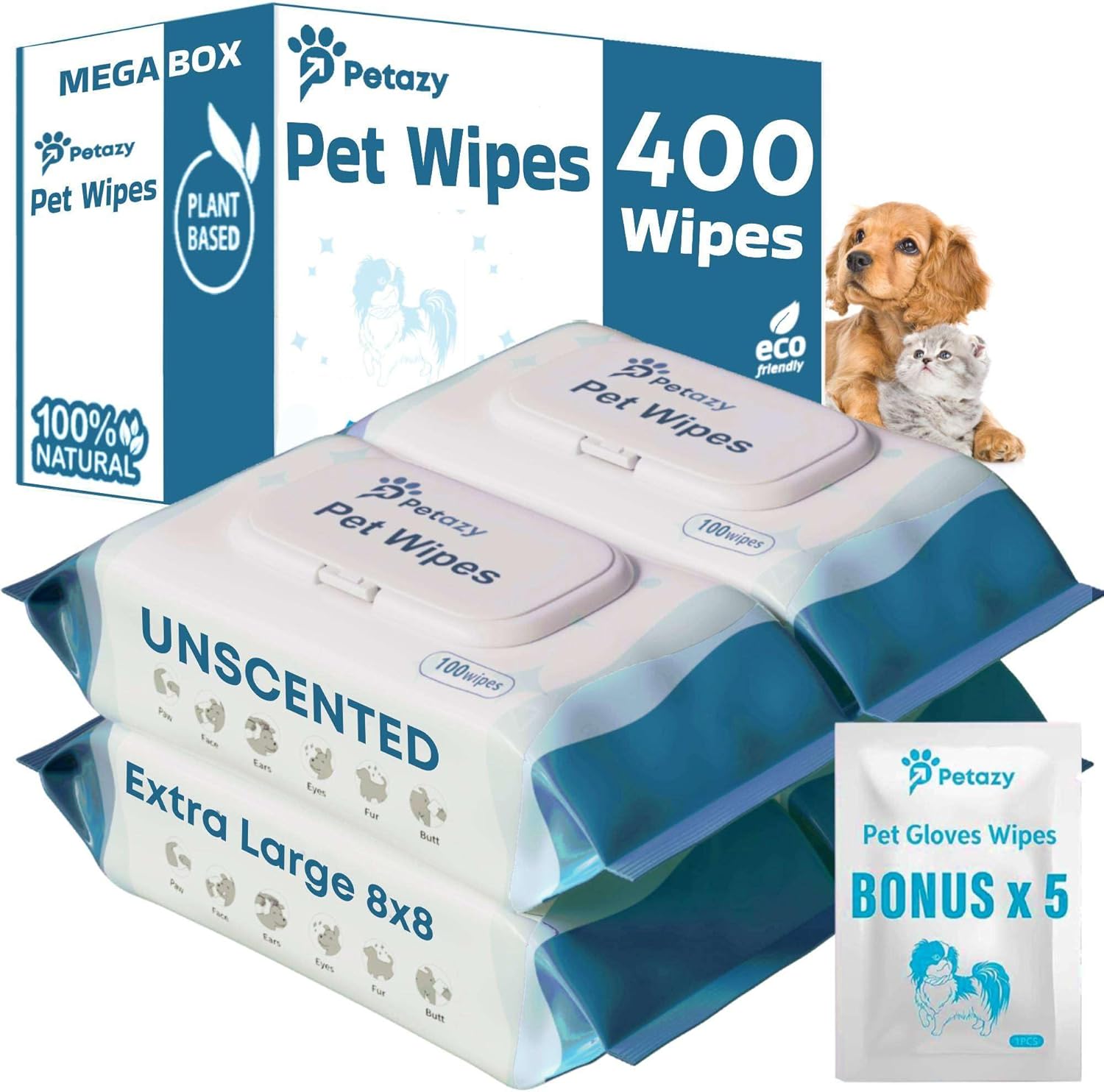 - PETAZY PET WIPES FOR DOGS AND CATS - Our deodorizing wipes are a fast and convenient way to freshen up your pet and remove all dirt between baths. Use on ears, fur, paws, butt, and around eyes. Tough on the odor, gentle on the pet.