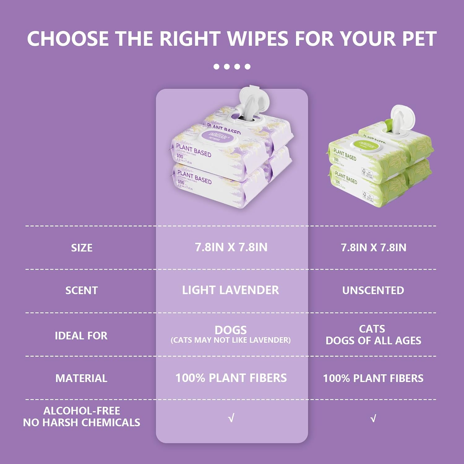 - Not recommended for cats due to the lavender scent; we offer fragrance-free wipes for them
