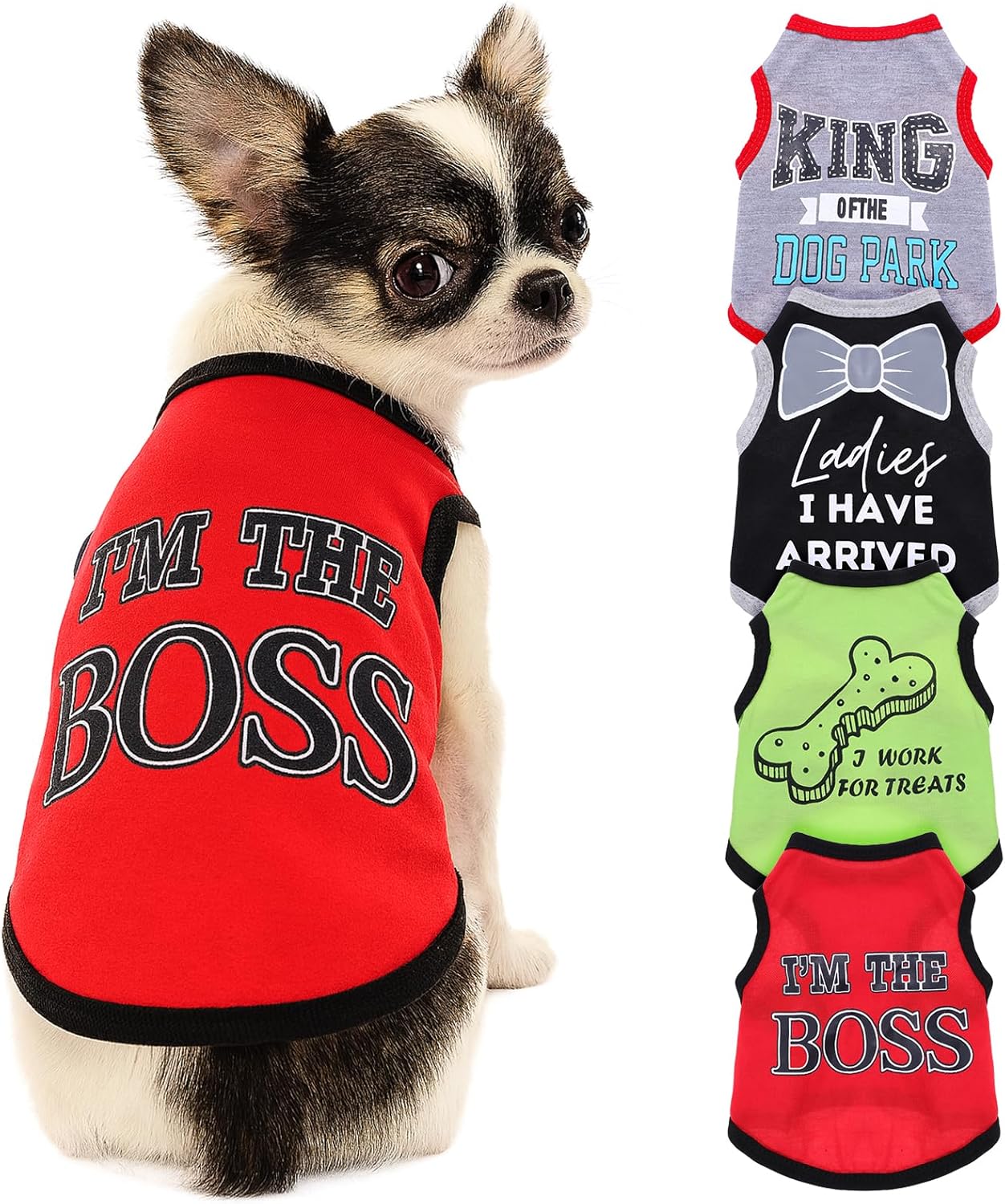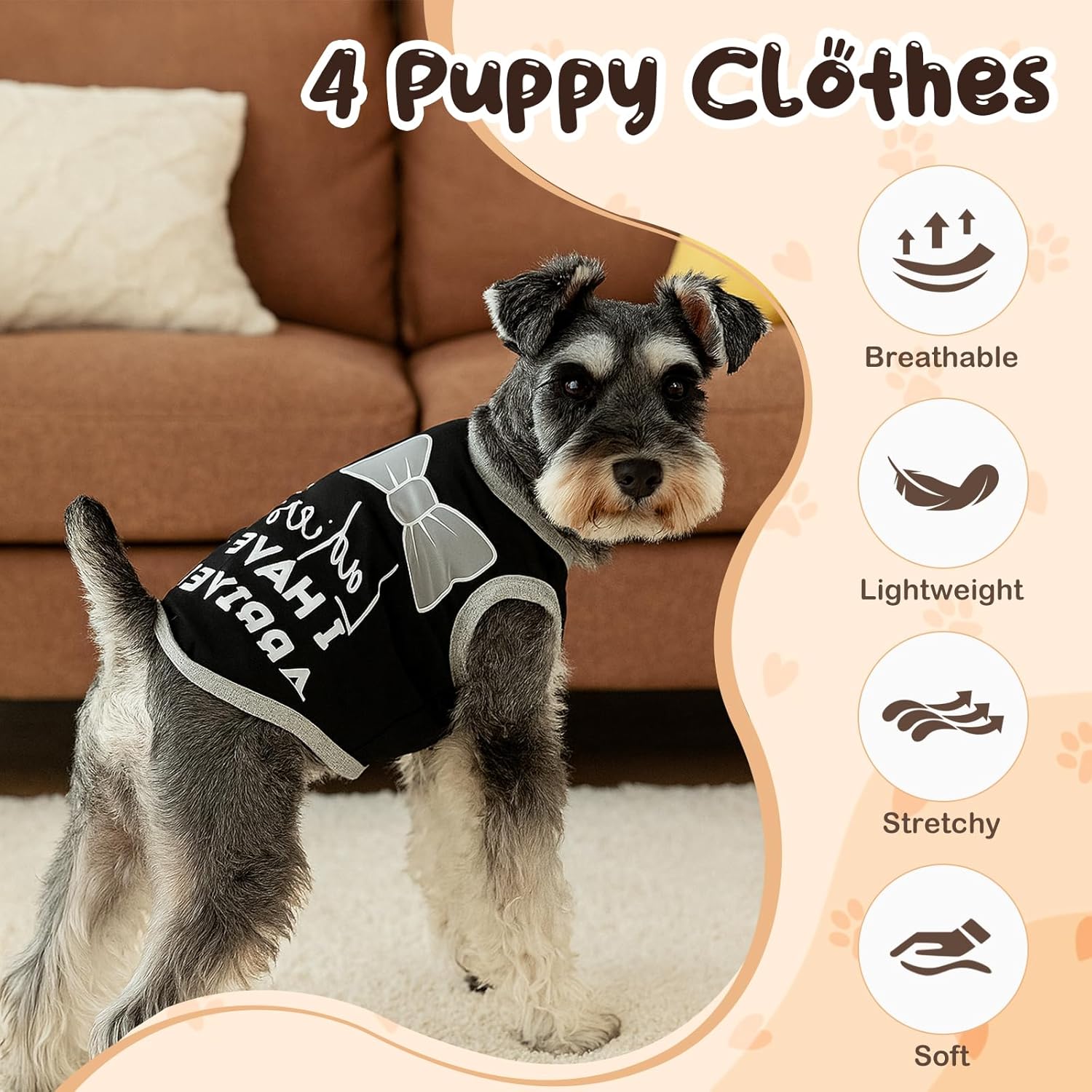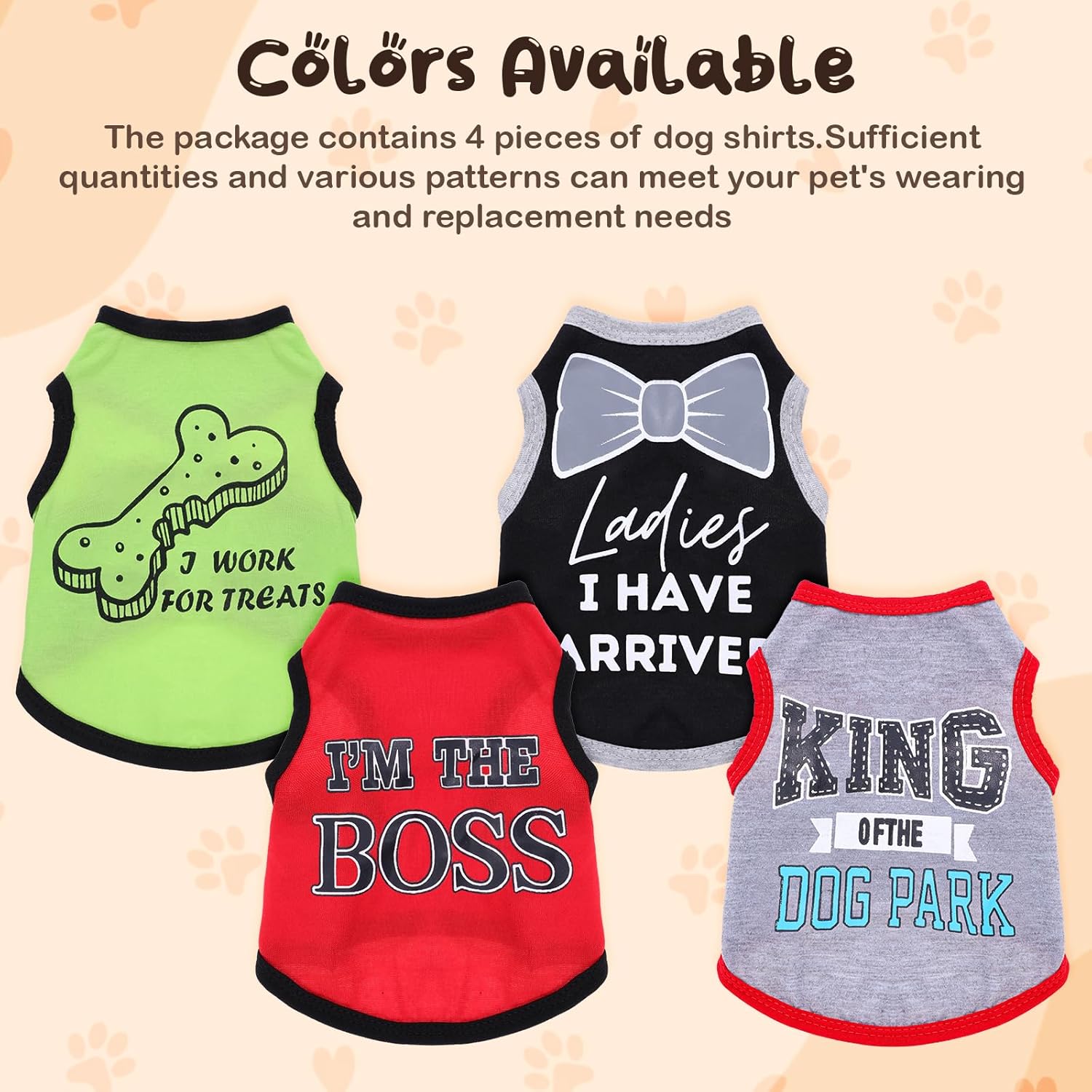 - Package Includes: You will receive 4pcs dog shirts for small dogs, 4 different styles: red, gray, green, black, the size of the green one is slightly larger, each design is vibrant to meet your needs for different styles