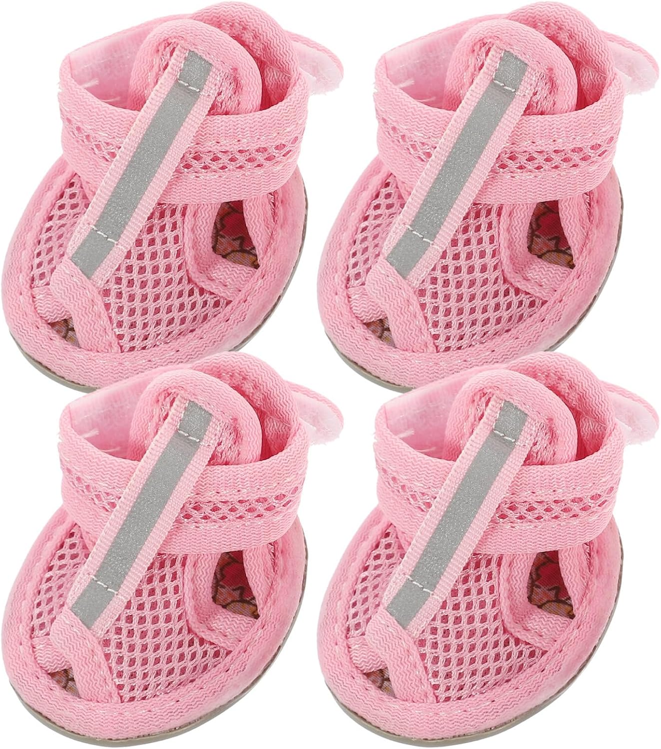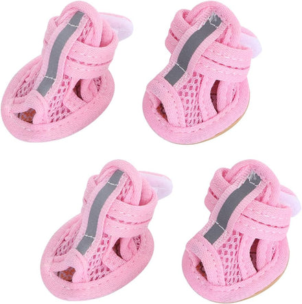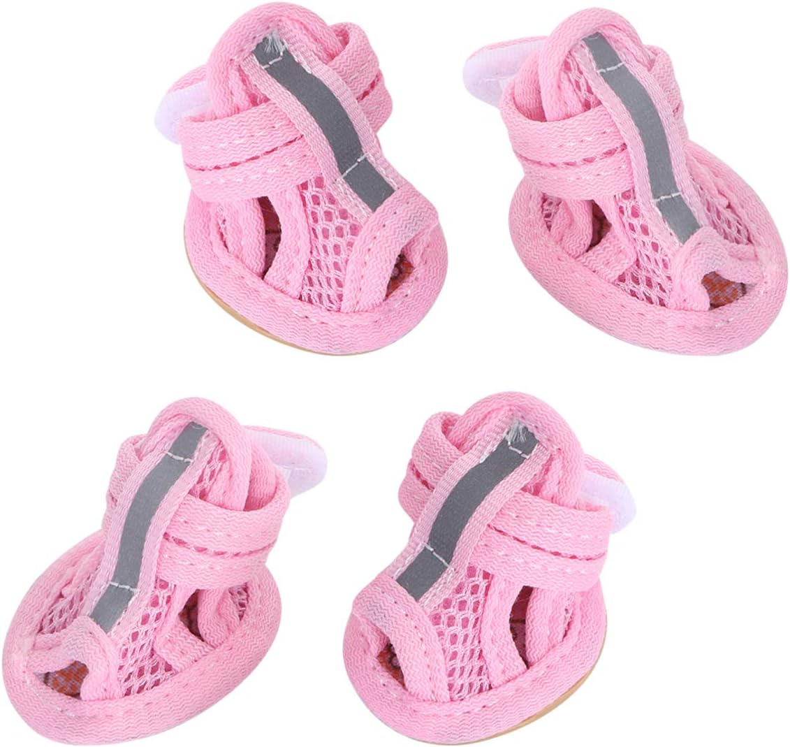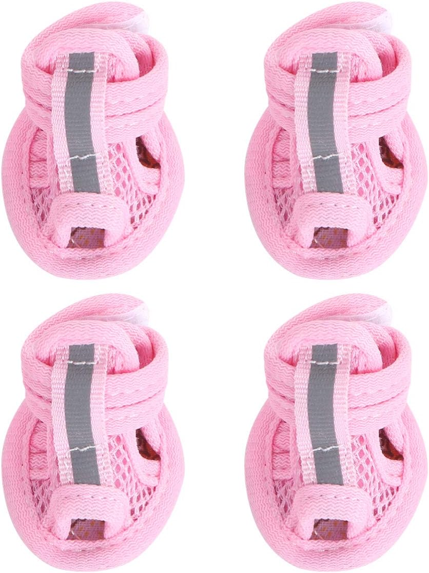 4pcs Summer Dog Shoes for Hot Pavement, Pet Dog Breathable Boots Dog Mesh Sandals Breathable Summer Dog Shoes Antis- Slip Sneakers for Small Dog Cat Walking Running Outdoor (Pink) Size1