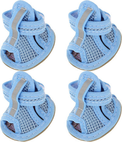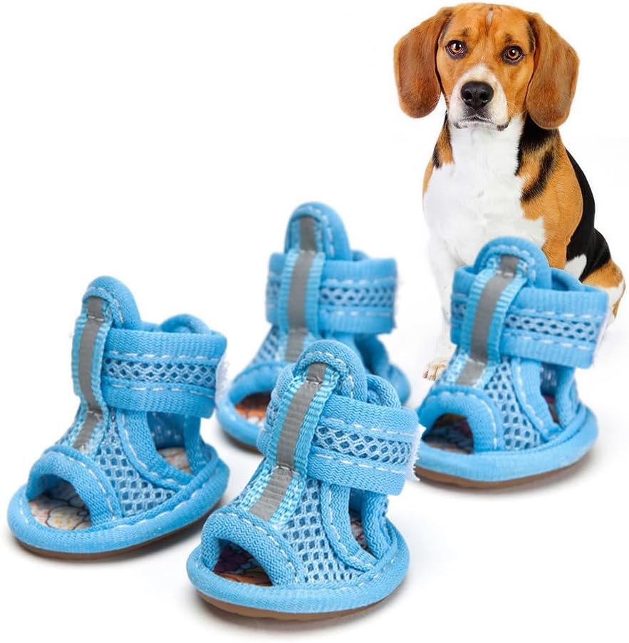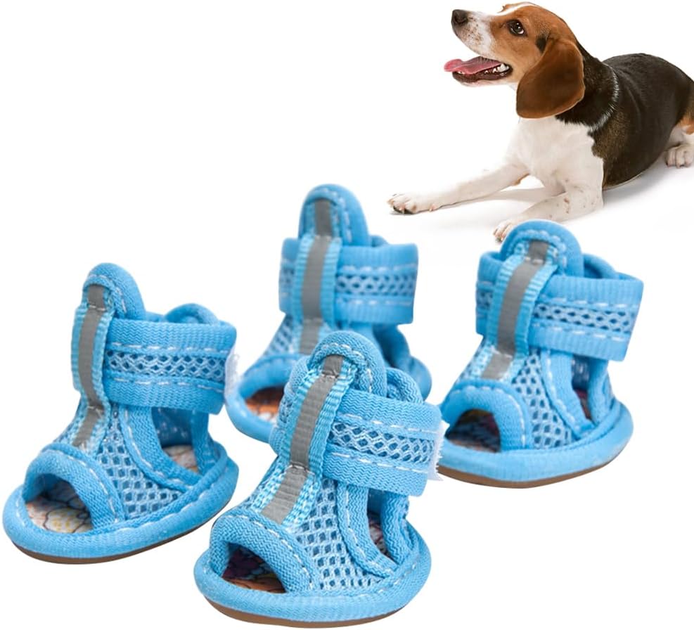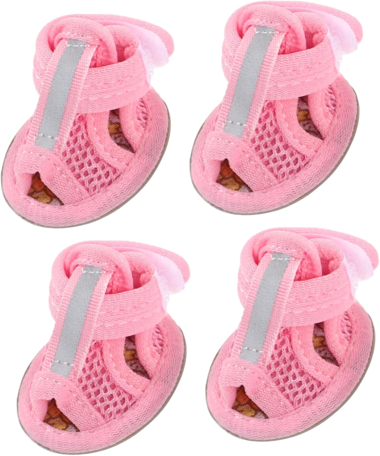 4pcs Summer Dog Shoes for Hot Pavement, Pet Dog Breathable Boots Dog Mesh Sandals Breathable Summer Dog Shoes Antis- Slip Sneakers for Small Dog Cat Walking Running Outdoor (Pink) Size1