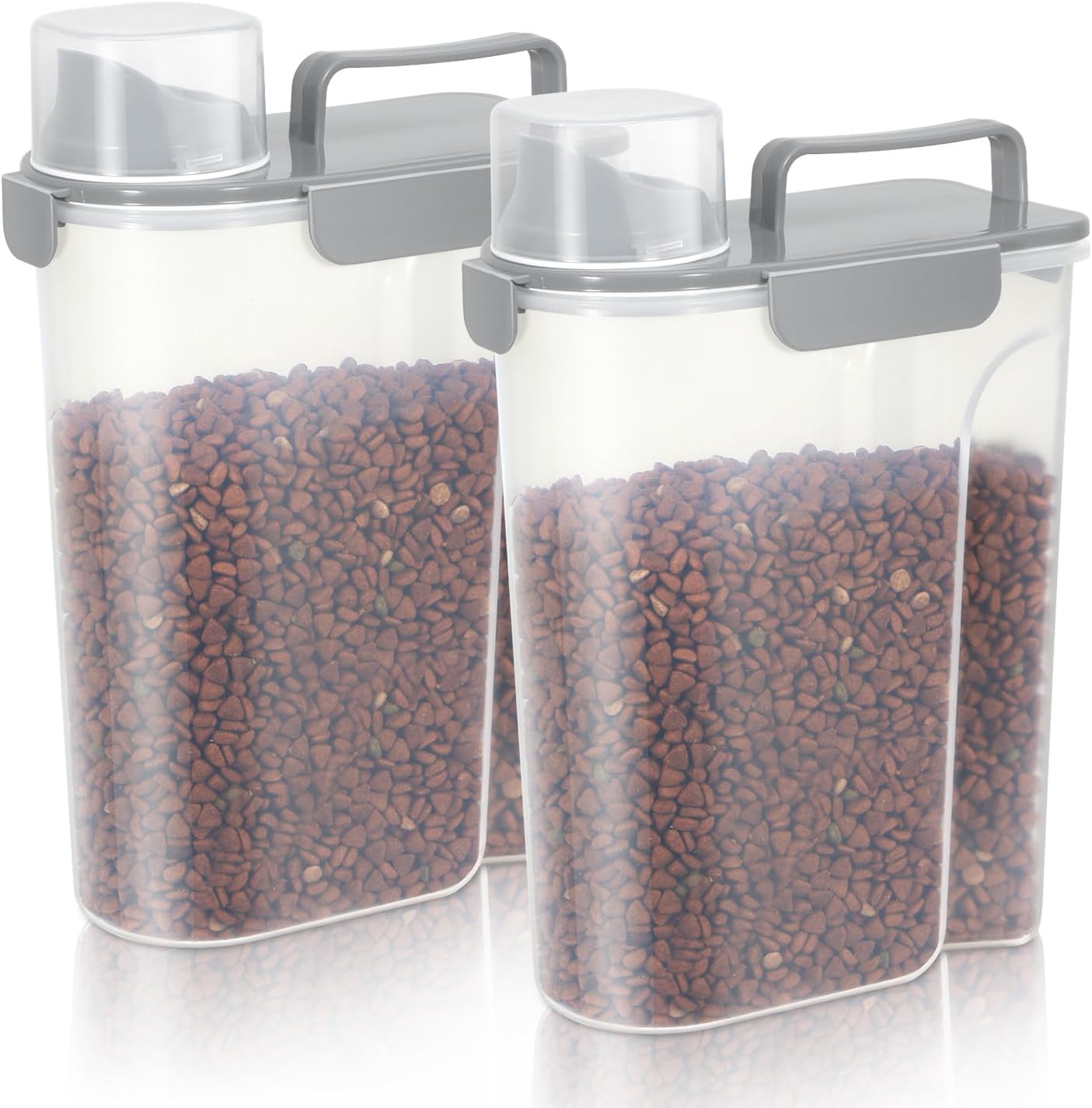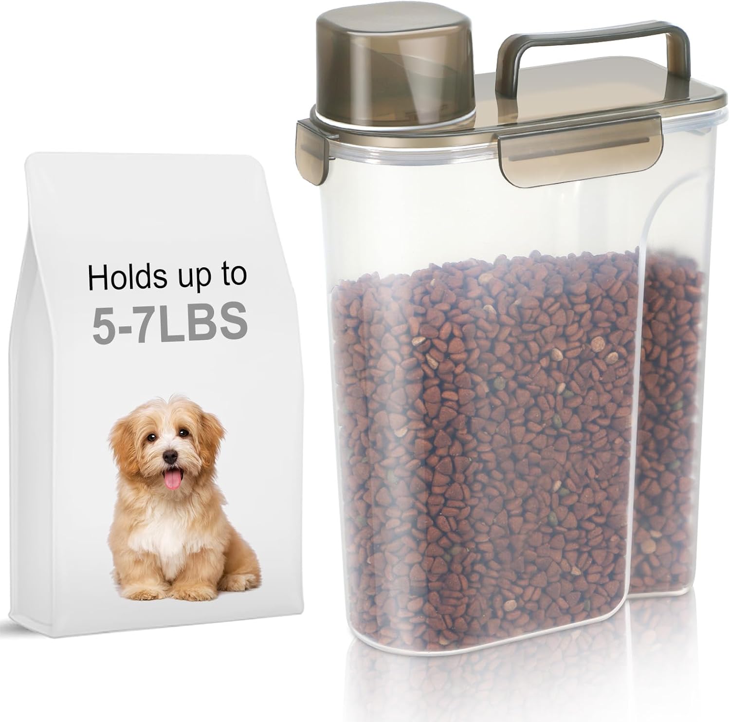 - WHAT YOU GET ? The dog food storage container comes with a 1-pack airtight pet food storage container with a clear measuring cup and an upgraded large spout for easy pouring of pet food at any time. This dog food storage containers can be a gift The perfect gift for any home.