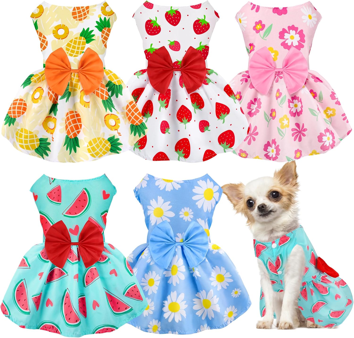 5 Styles to Choose: You will get 5 pieces cute dog dresses in 5 different styles for your baby pets. Six sizes are available for pets of all sizes as well as dogs and cats. Please refer to our size chart carefully and choose the most suitable dog clothes for your pet