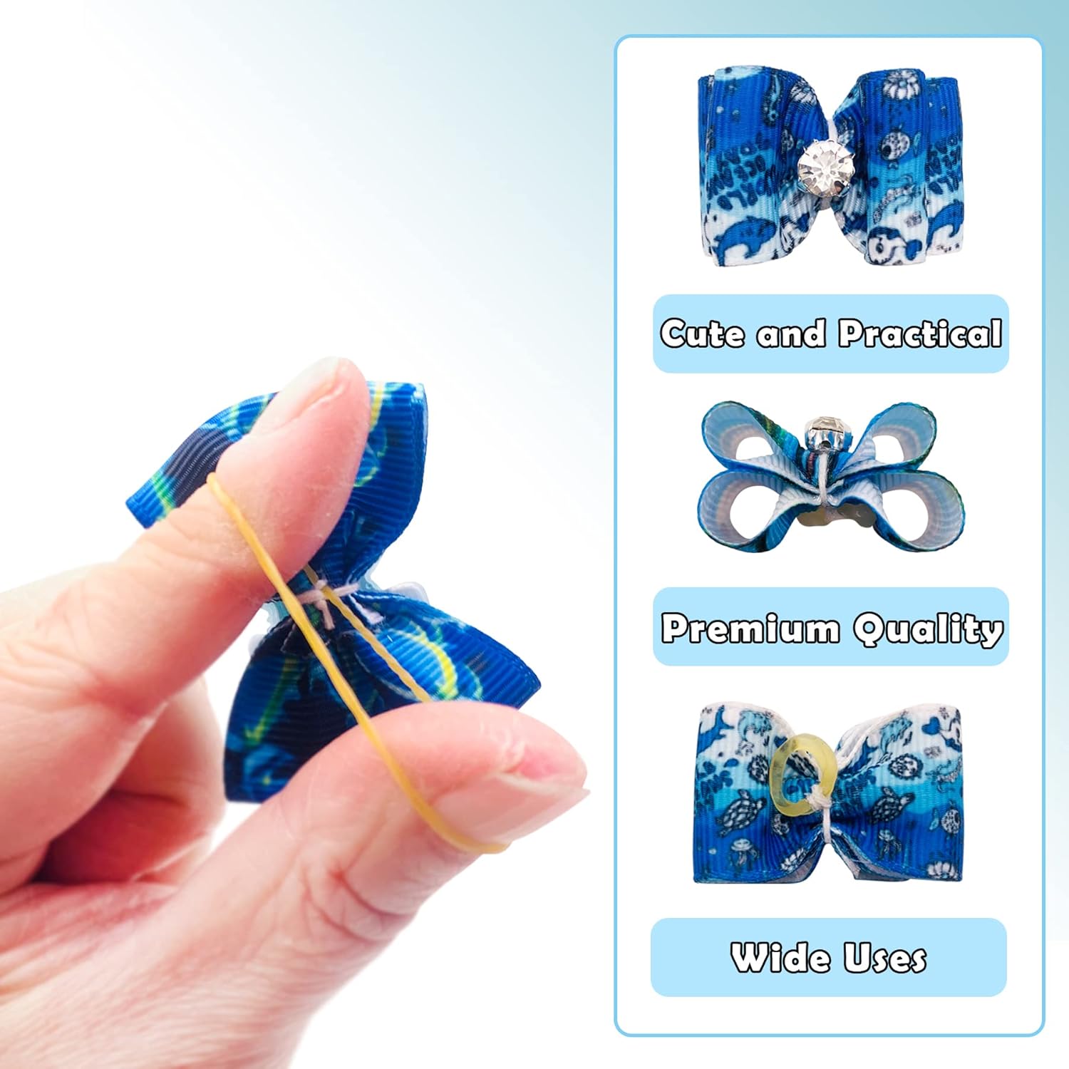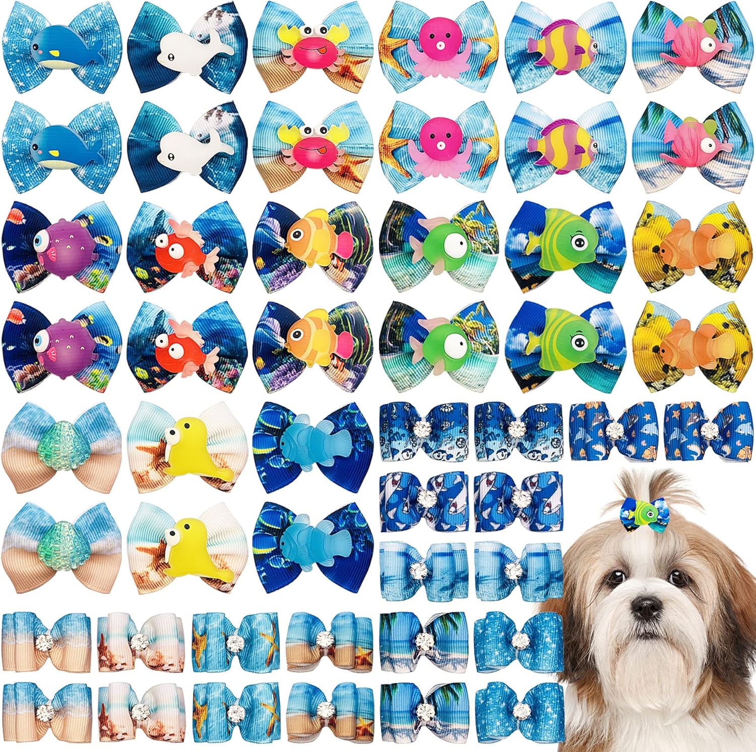 - Dog Bows Material:pet hair bows made of ribbon,sea animal accessories and rubber bands on backside.soft and silky, non-toxic, and durable,comfortable for your pet.
