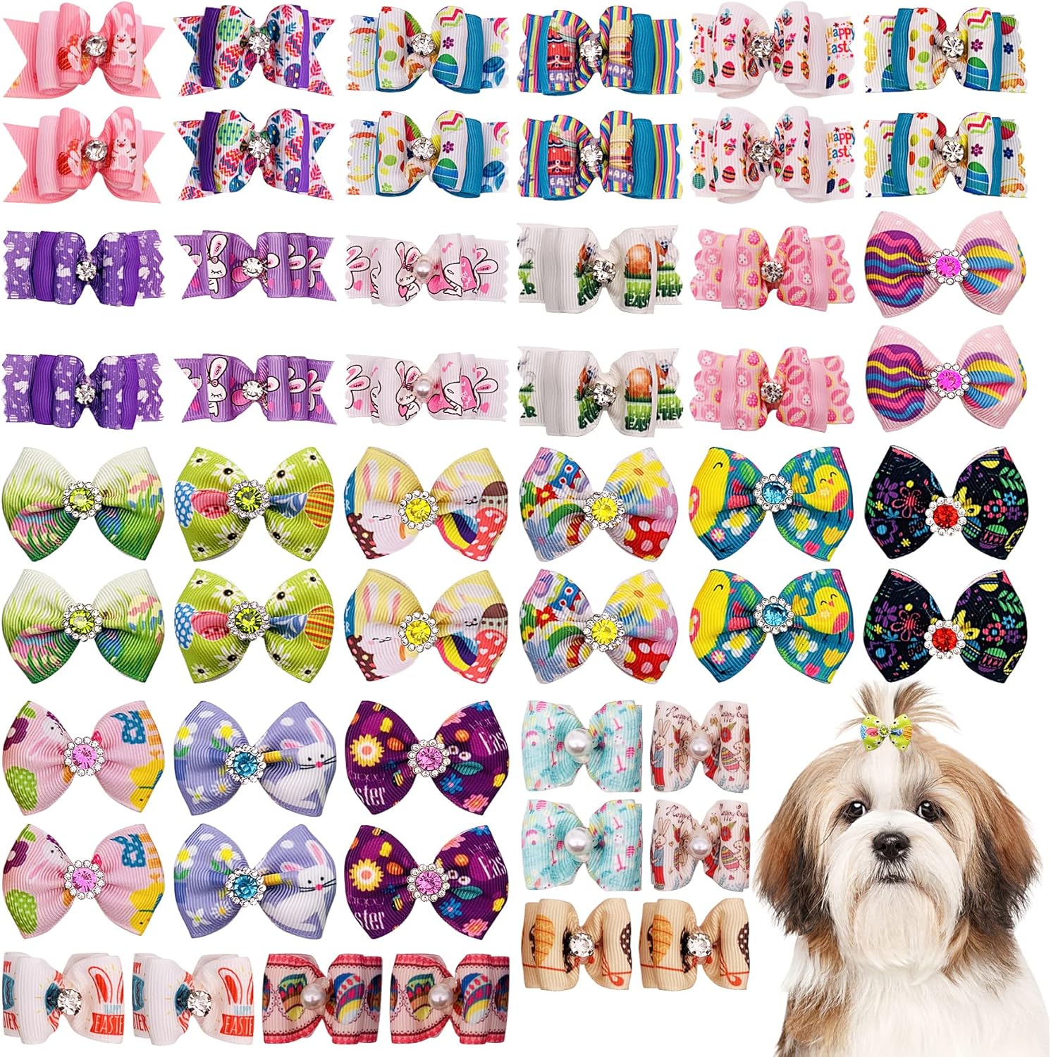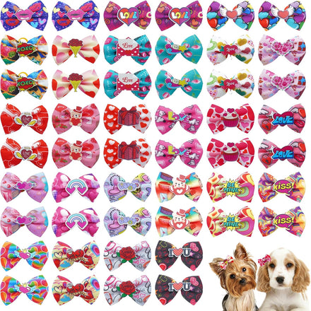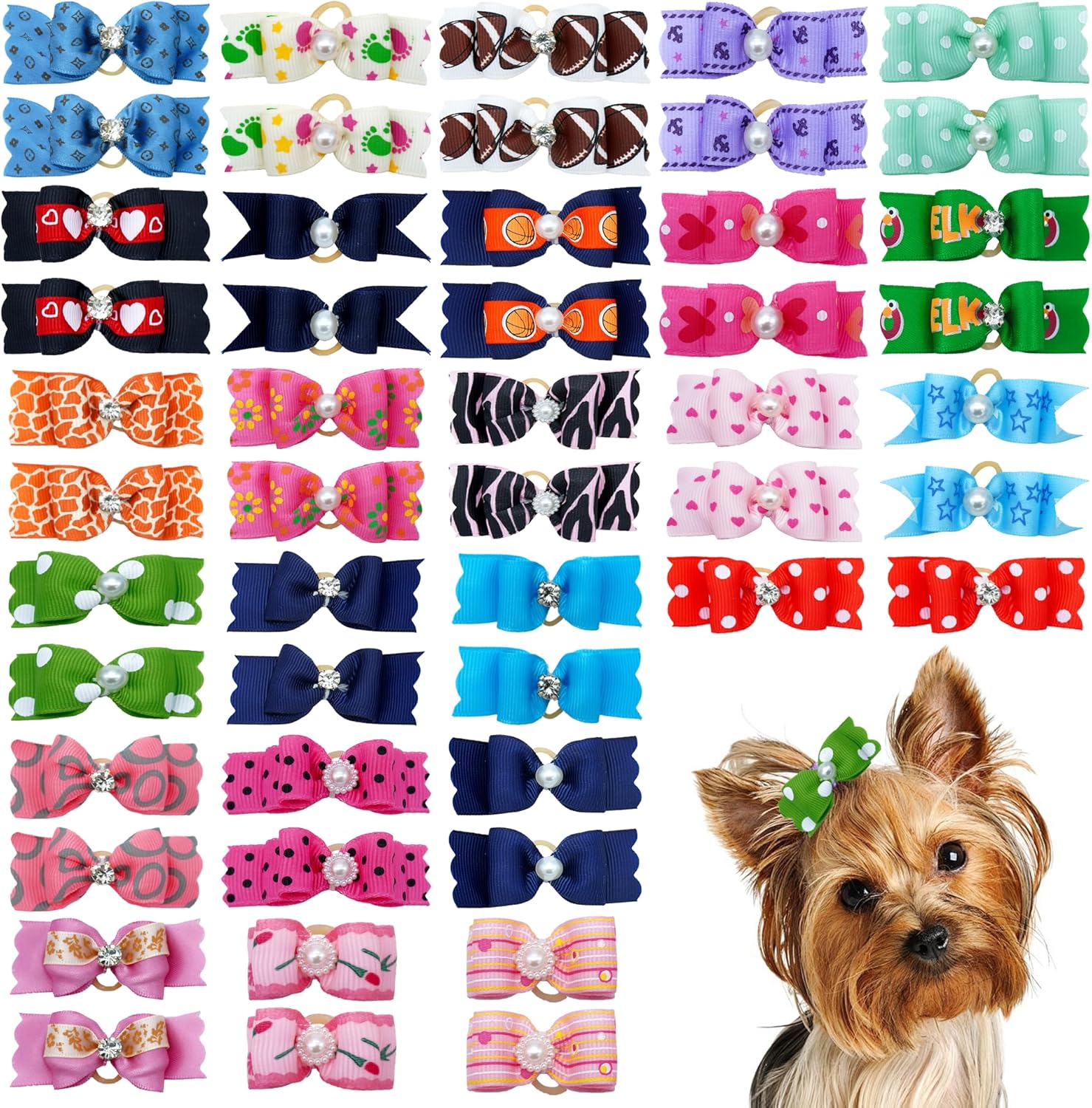- Dog Hair Bows Package: You will get 50 pieces/25pairs dog hair bows in 25different patterns,the applicable pets are small pets, medium,diggie,puppy,rabbits, cats, and other pets with hair,sufficient quantity and various styles can meet your pets' dress up needs