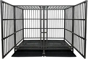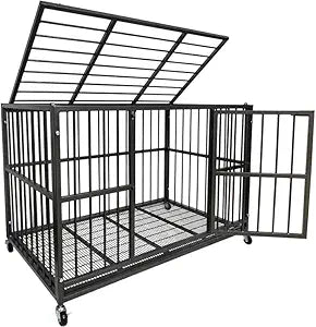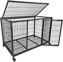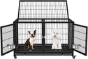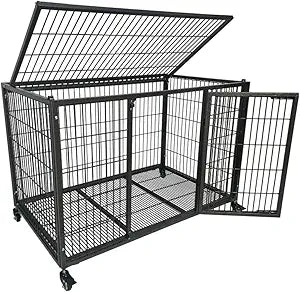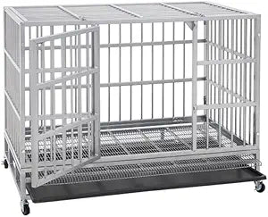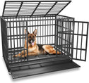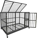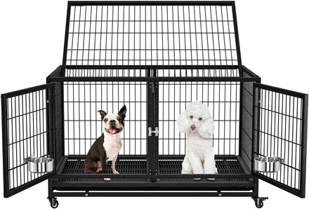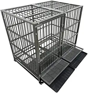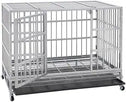 54/48/42/38 inch Heavy Duty Indestructible and Escape-Proof Dog Crate Cage Kennel for Large Dogs, High Anxiety Dog Crate with Removable Wire Trays and Wheels, Extra Large XL XXL