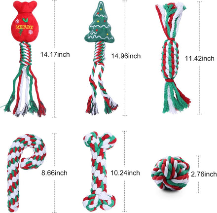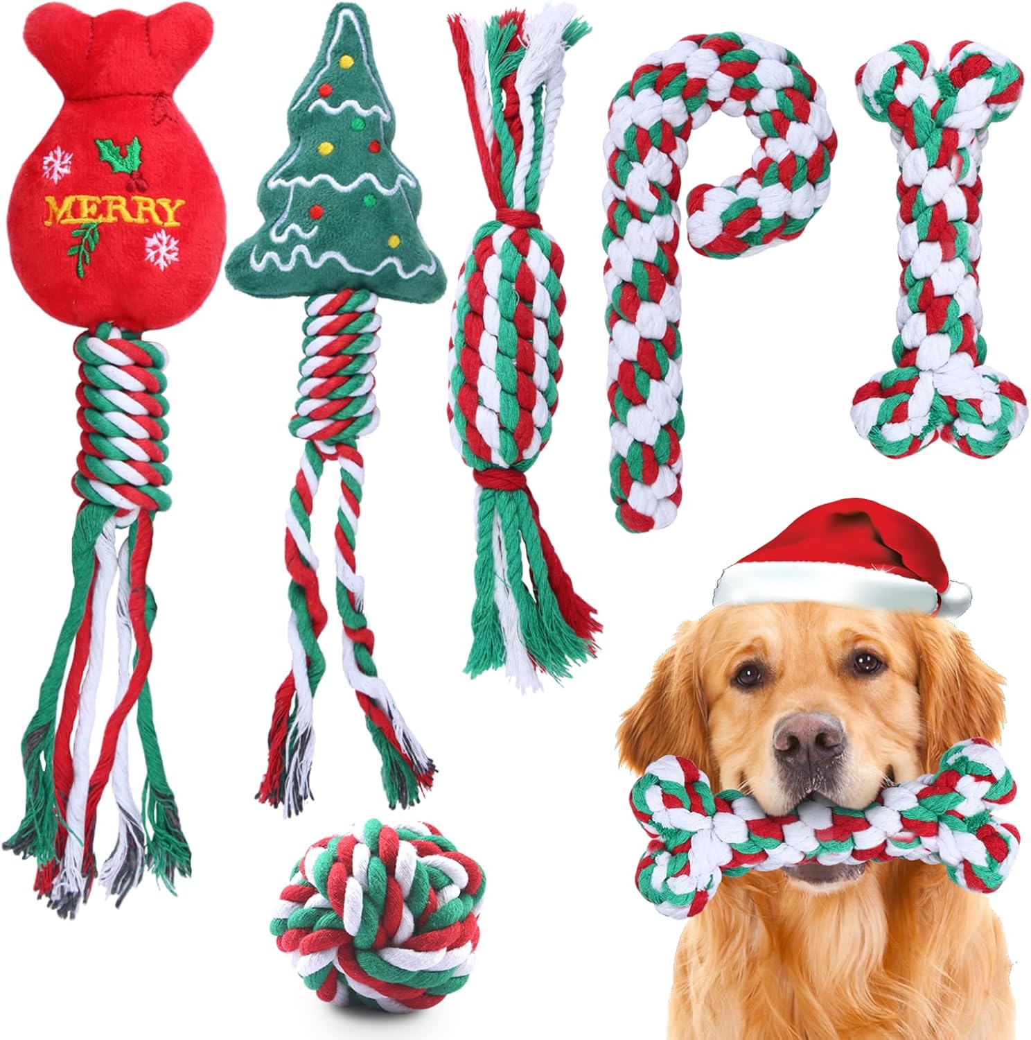 • DOG CHRISTMAS GIFT SET: To make your dog more special at Christmas, we bring you this Dog Christmas Gift Rope Toy Set! This set has 6 different shapes of rope toys, each with added Christmas elements, which is designed to bring more Christmas atmosphere for dogs and dog owners to feel more festive joy during Christmas. All puppy chew toys are washable and easy to use.
