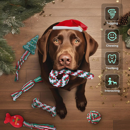 • SPECIAL GIFT: Make your dog feel loved and joyful this special holiday season by choosing our Dog Christmas Gift Rope Knot Set! Imagine your pet holding a toy with Christmas elements, their eyes reveal excitement and joy, as if they are in a Christmas world full of joy!