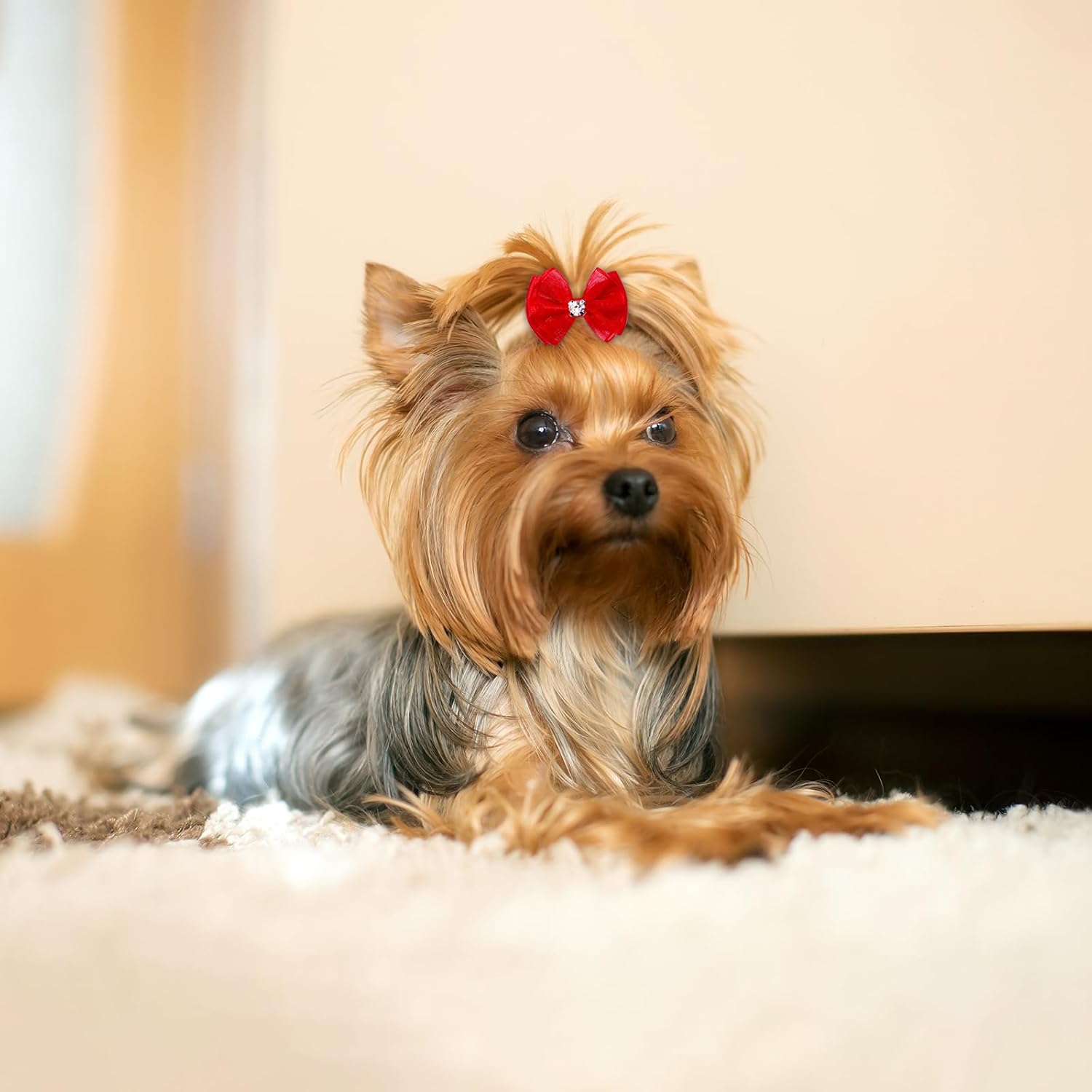 - The diamond bow is suitable for Yorkies, Pomeranians, Chihuahuas and other long haired dogs, and can also be used for some pets such as your cat, rabbit, etc. Bows come in pairs and we can dress up our pets beautifully.