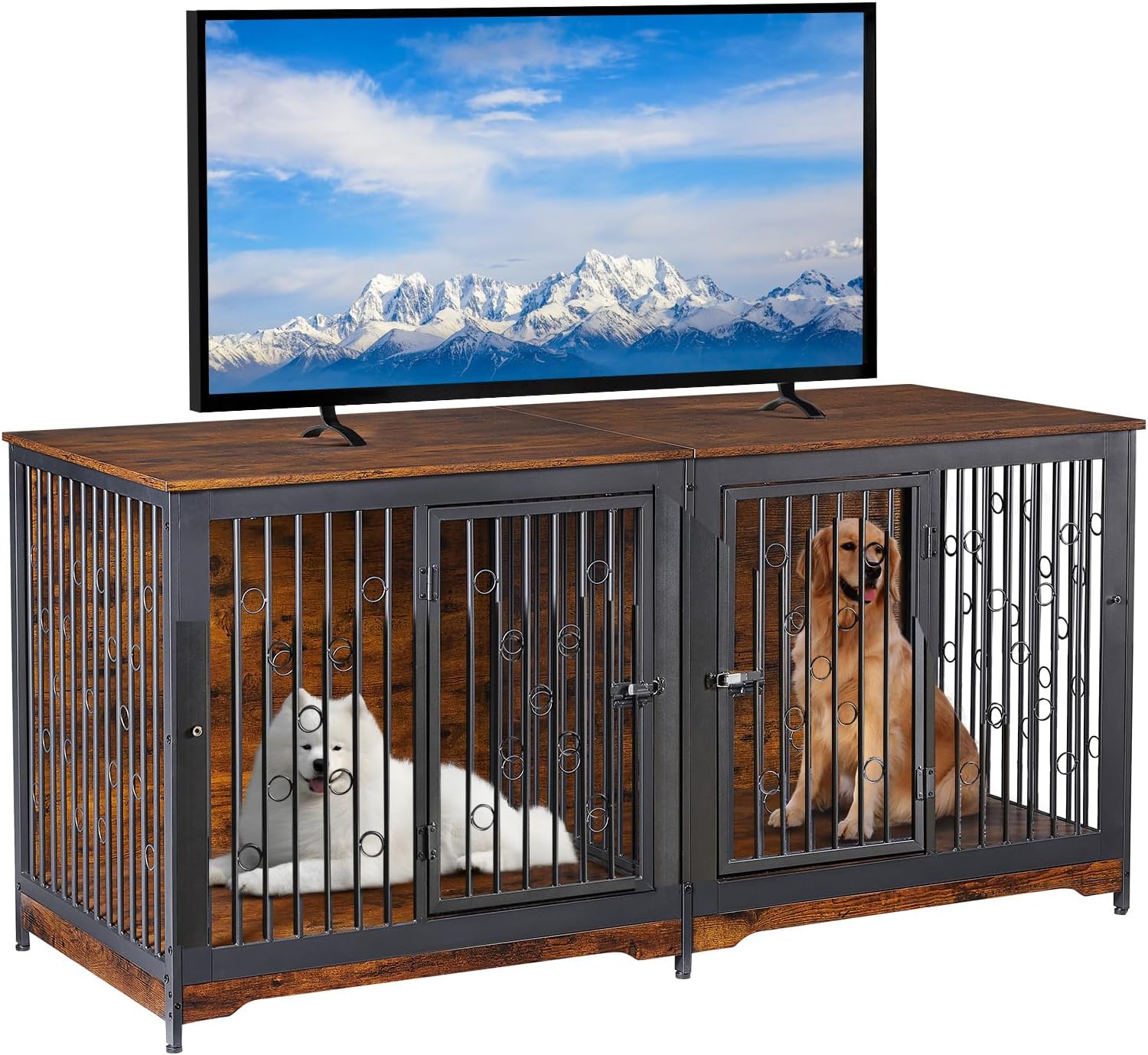 【Sturdy and Chew-Resistant】This dog crate furniture for 2 dogs is made of premium particle board and iron pipe, which is stronger and more chewy, it will accompany your dog throughout the growing stages