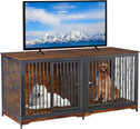 71'' Dog Crate Furniture for 2 Large Medium Dogs, XXL Wooden Indoor Double Crate Kennel Cage Large Breed with Door, TV Stand End Table with Divider, No Cushion,Brown