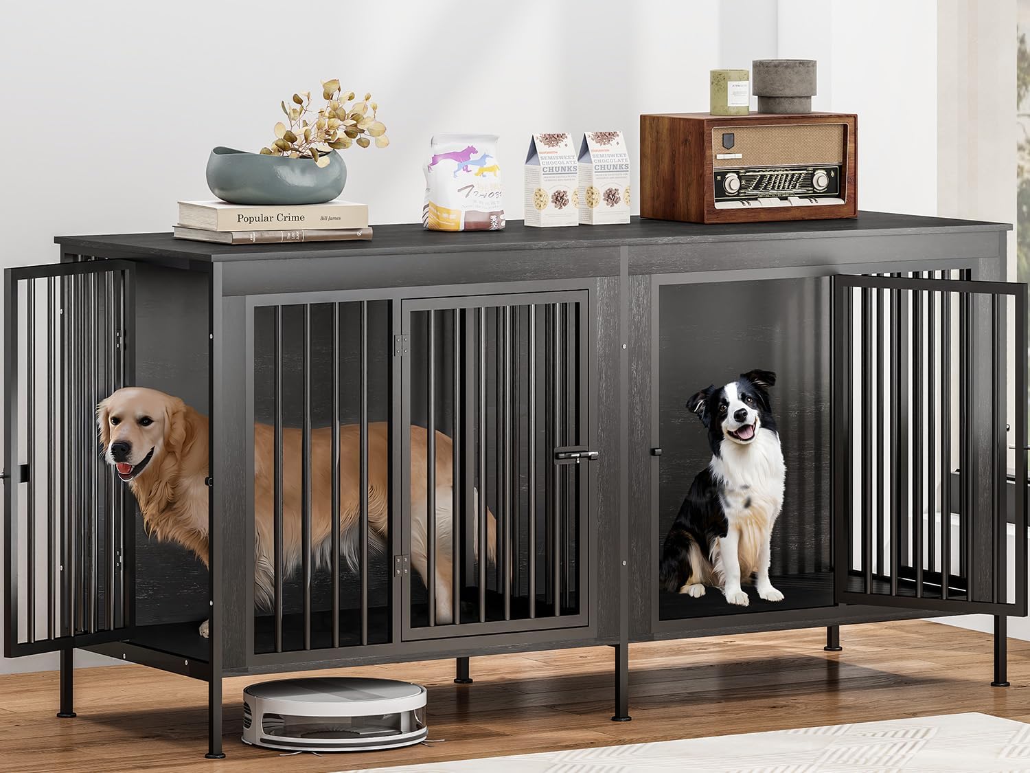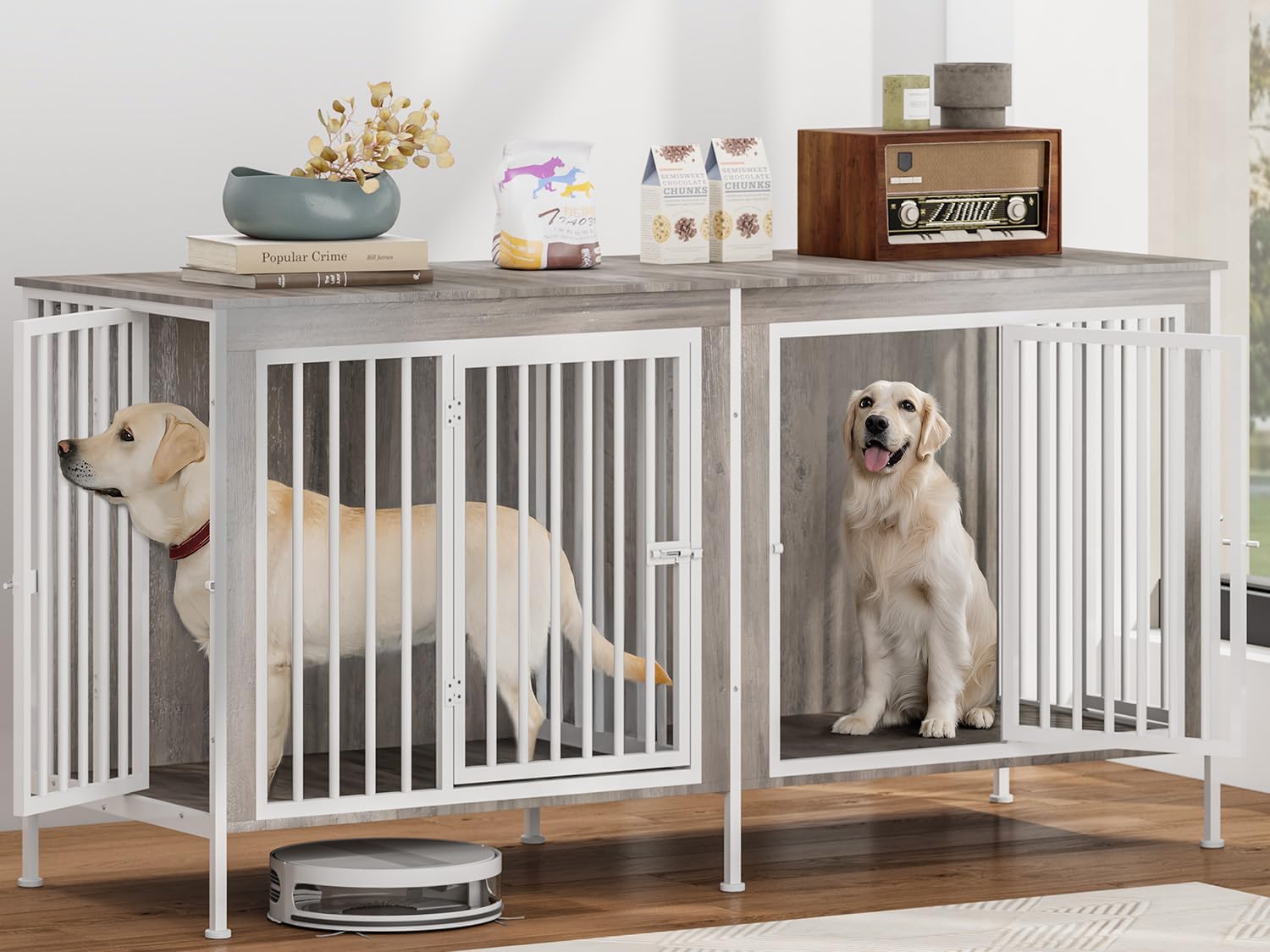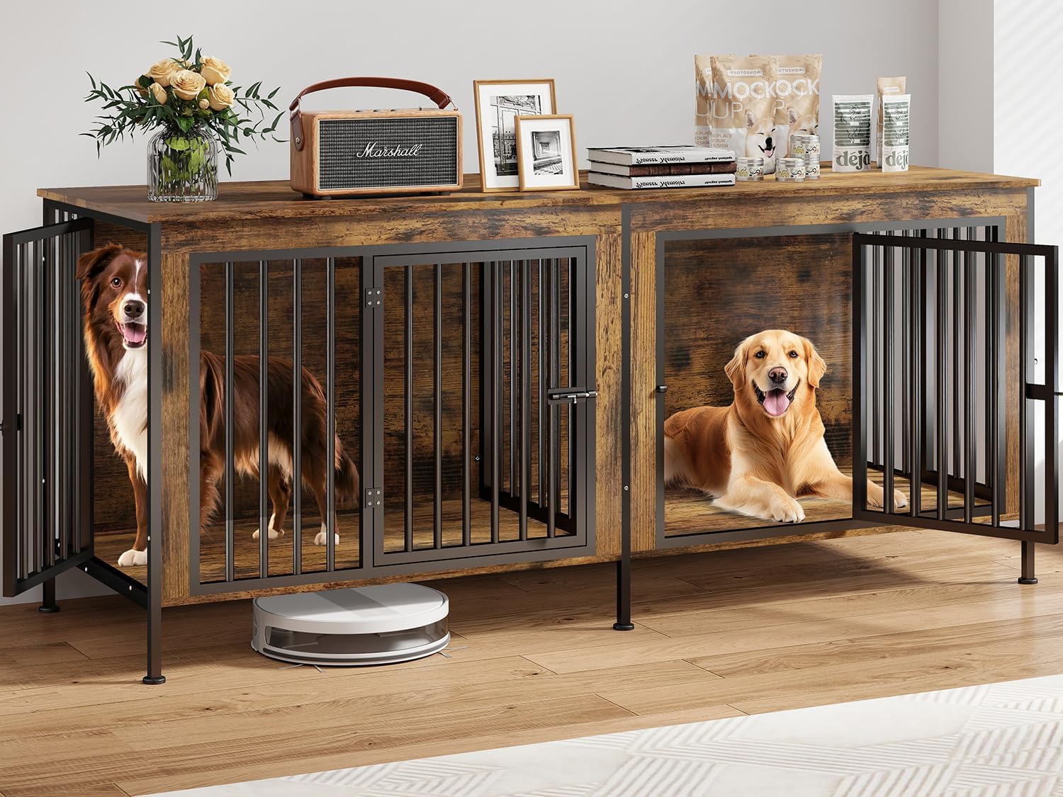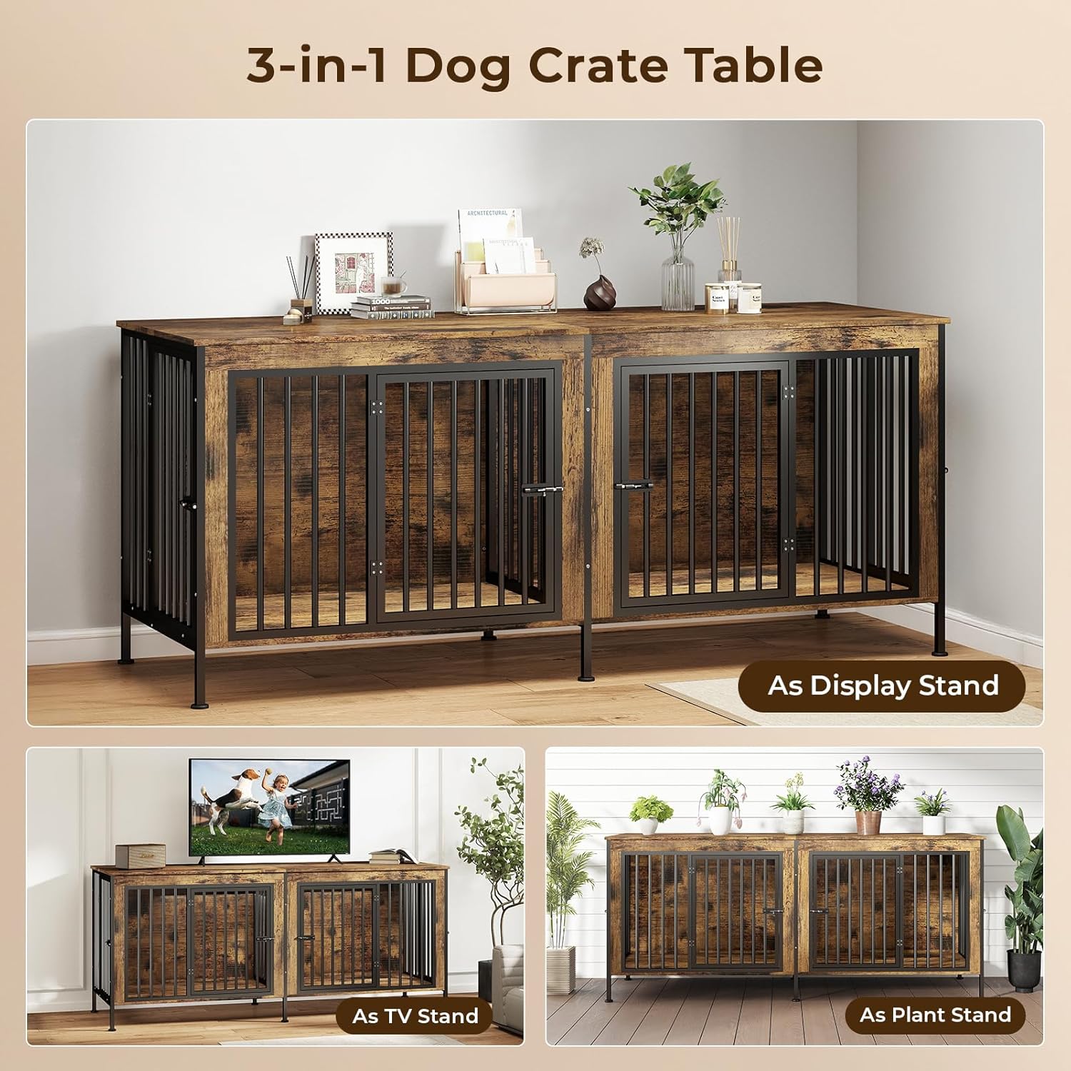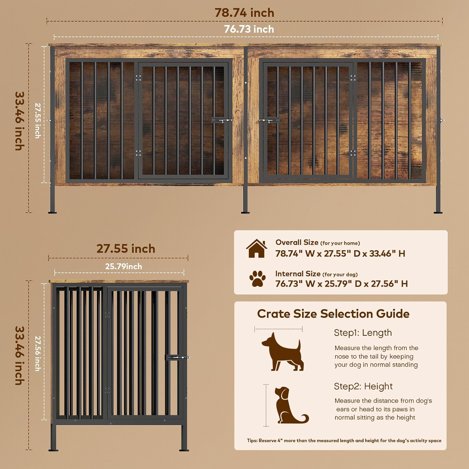 - 【Spacious Size for Comfort】The dog crate furniture offers a large space of 78.74" W x 27.55" D x 33.46" H, providing ample room for two large dogs. It ensures they have plenty of space to move around, avoiding anxiety and discomfort caused by limited space.