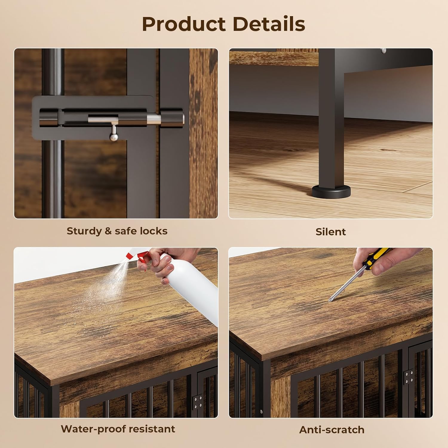 - 【Multi-functional】With its minimalist and vintage design, this dog crate furniture seamlessly complements various home decoration styles. In addition to serving as a dog crate, it can also function as a TV cabinet, side table, or storage unit, offering extra storage space while combining beauty and practicality.