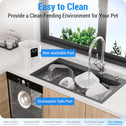- Clean More Thoroughly ( Detachable ) : The cat feeder automatic (BPA-Free) has a removable food tank and stainless steel bowl. Individually disassembled food tank can be cleaned more thoroughly. Stainless steel bowls can be placed in the dishwasher for cleaning. These removable designs make eating more hygienic for your pet.