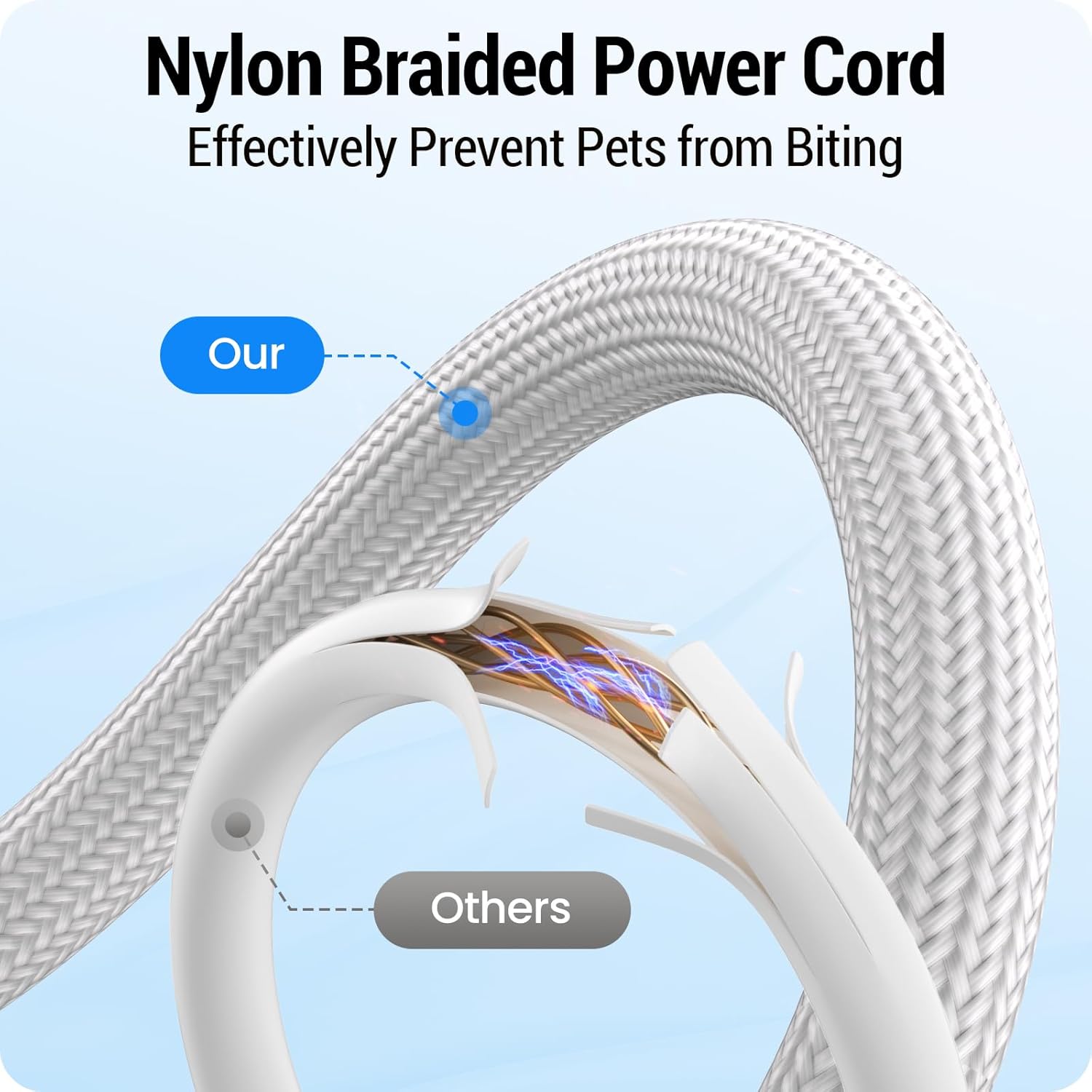 - Dual Power Supply : The cat automatic feeders has two power supply systems. DC 5V power adapter for daily use of the wifi cat feeder. The 3 D cell batteries ensure your pet has a continuous supply of food when your home loses power. You can enjoy your vacation or work away from home with peace of mind( Dual power supply recommended ). The specially made anti-bite nylon braided line of this automatic pet feeder can effectively prevent your line-biting pet from chewing it. This will be your best protection when you go out of town.